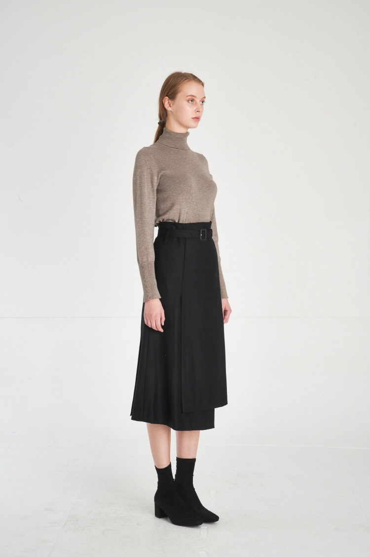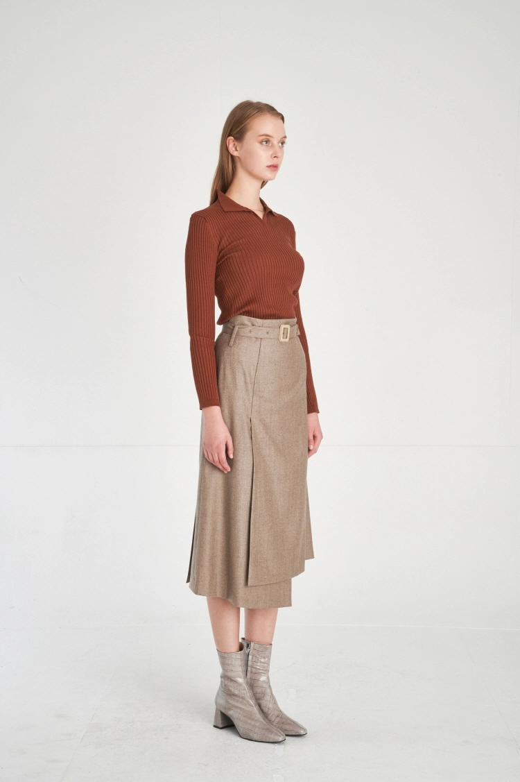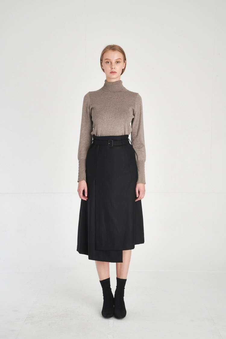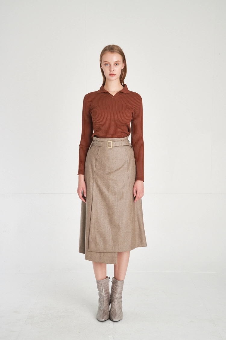 (FREAKSBYKIMTAEHOON) Modern Structural Asymmetric Wrap Design Wool 100% Midi-Skirt_Melange-Greige