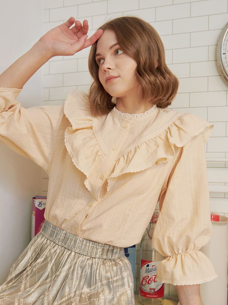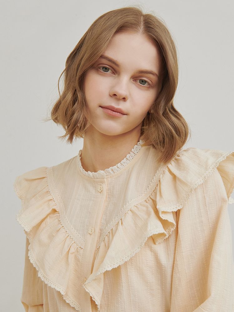 (ROAJEU)Lace Frill Blouse_BEIGE