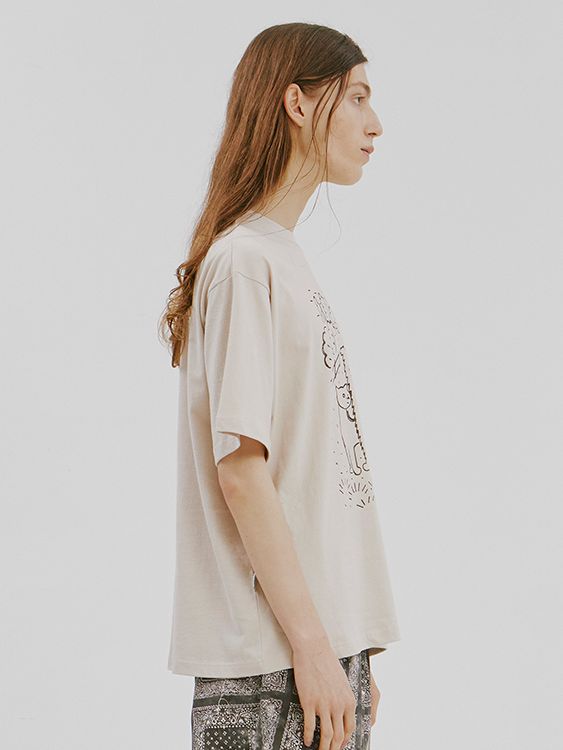 (VEGAN TIGER) NEW FRIENDS HALF T-SHIRT_BEIGE