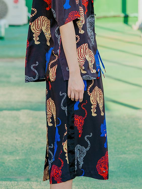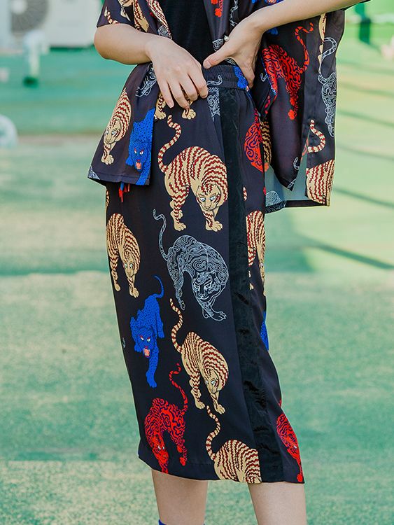 (VEGAN TIGER) TIGER PRINT SKIRT_BLACK