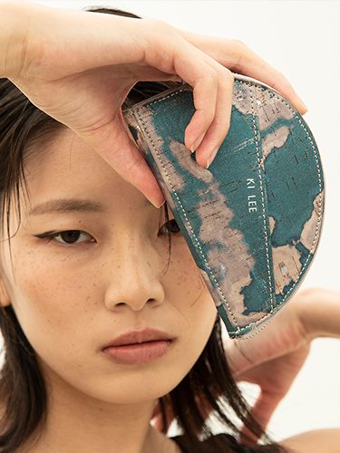 (KI LEE) HARAWAY cork zip-around wallet - ciel