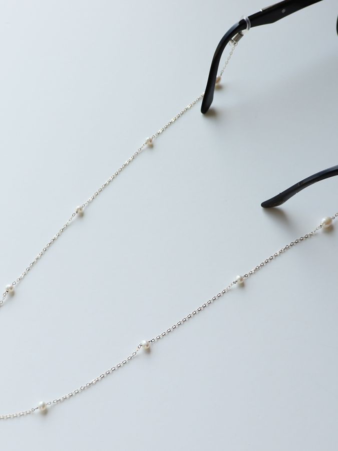 (ELYONA) Silver Glasses Chain Fresh Water Pearls