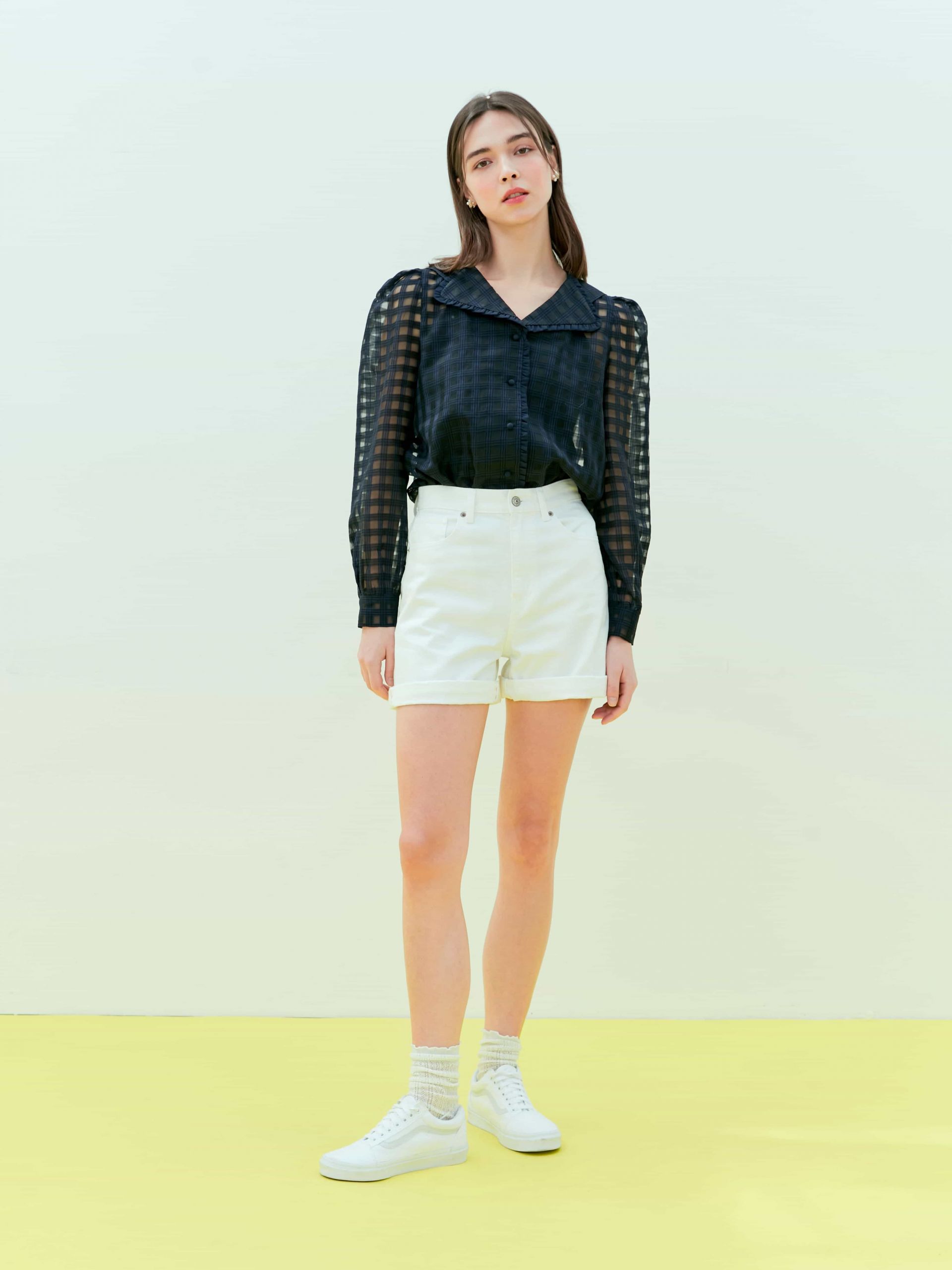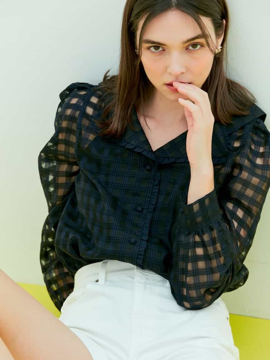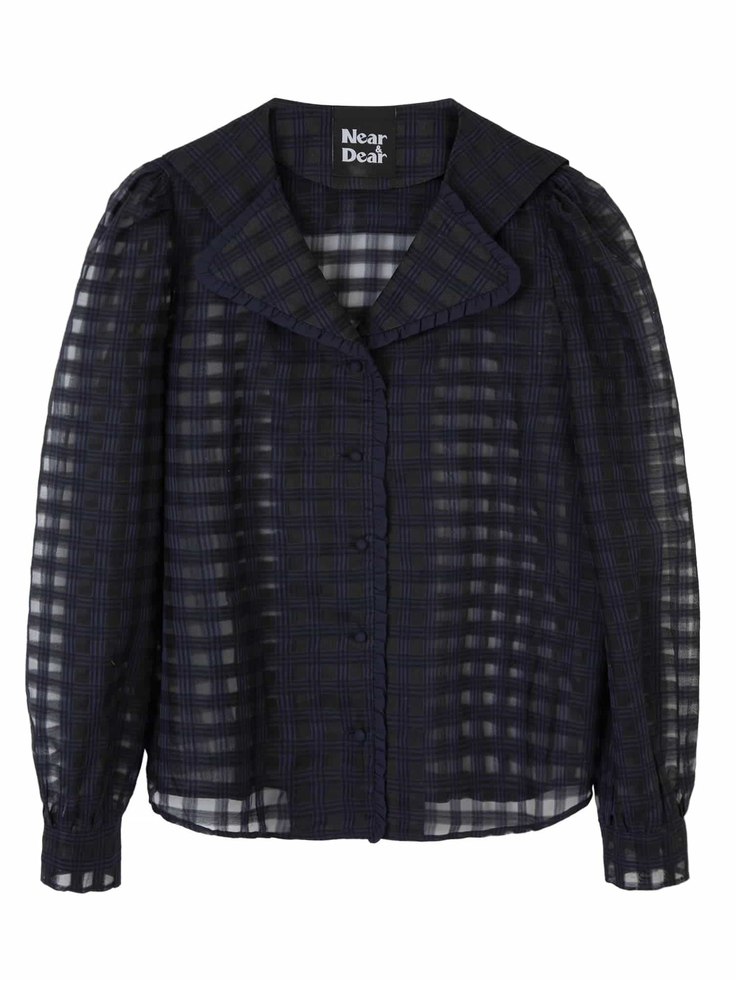 (Near&Dear) WOMAN Double collar plaid sheer blouse_NAVY