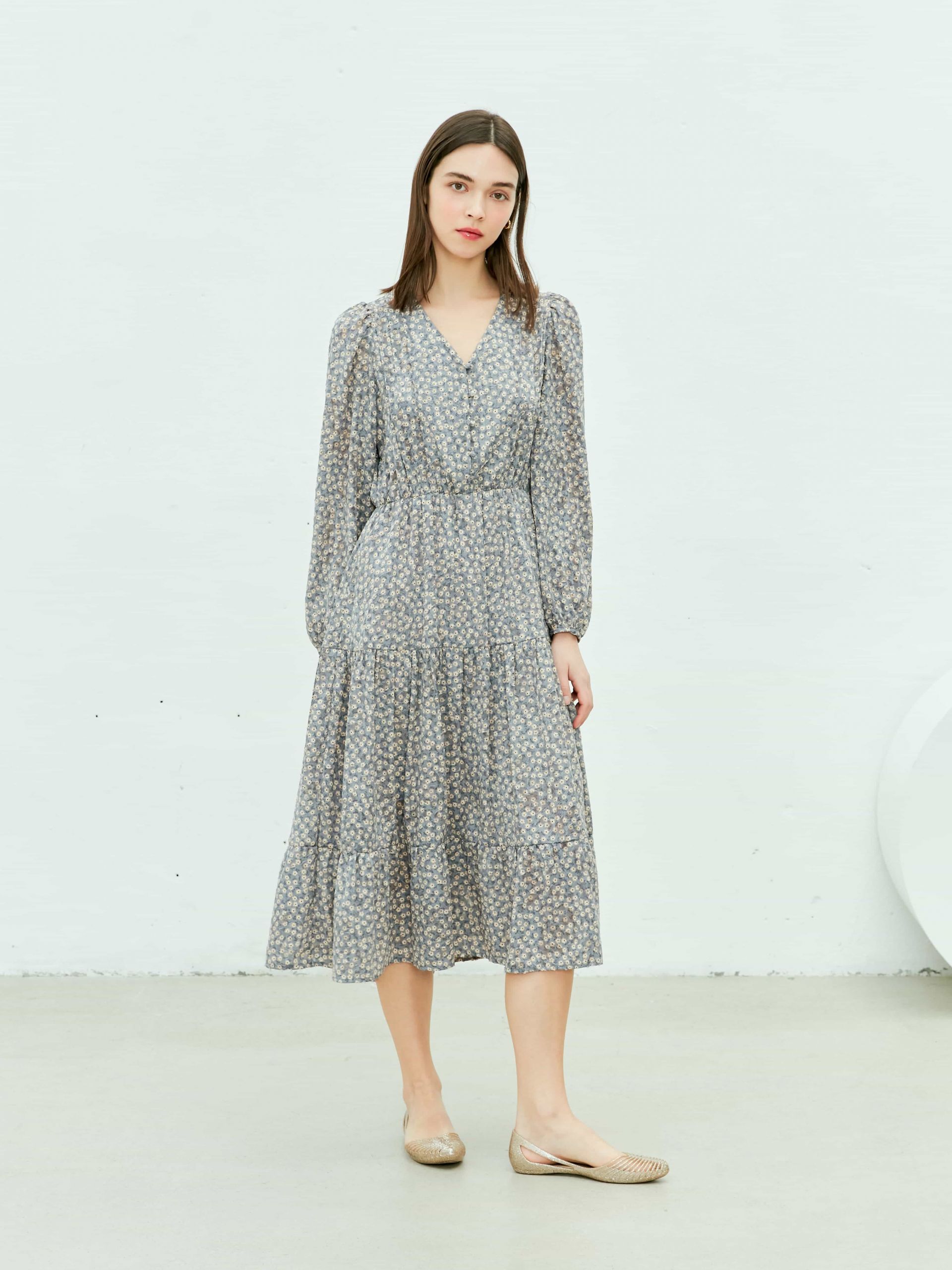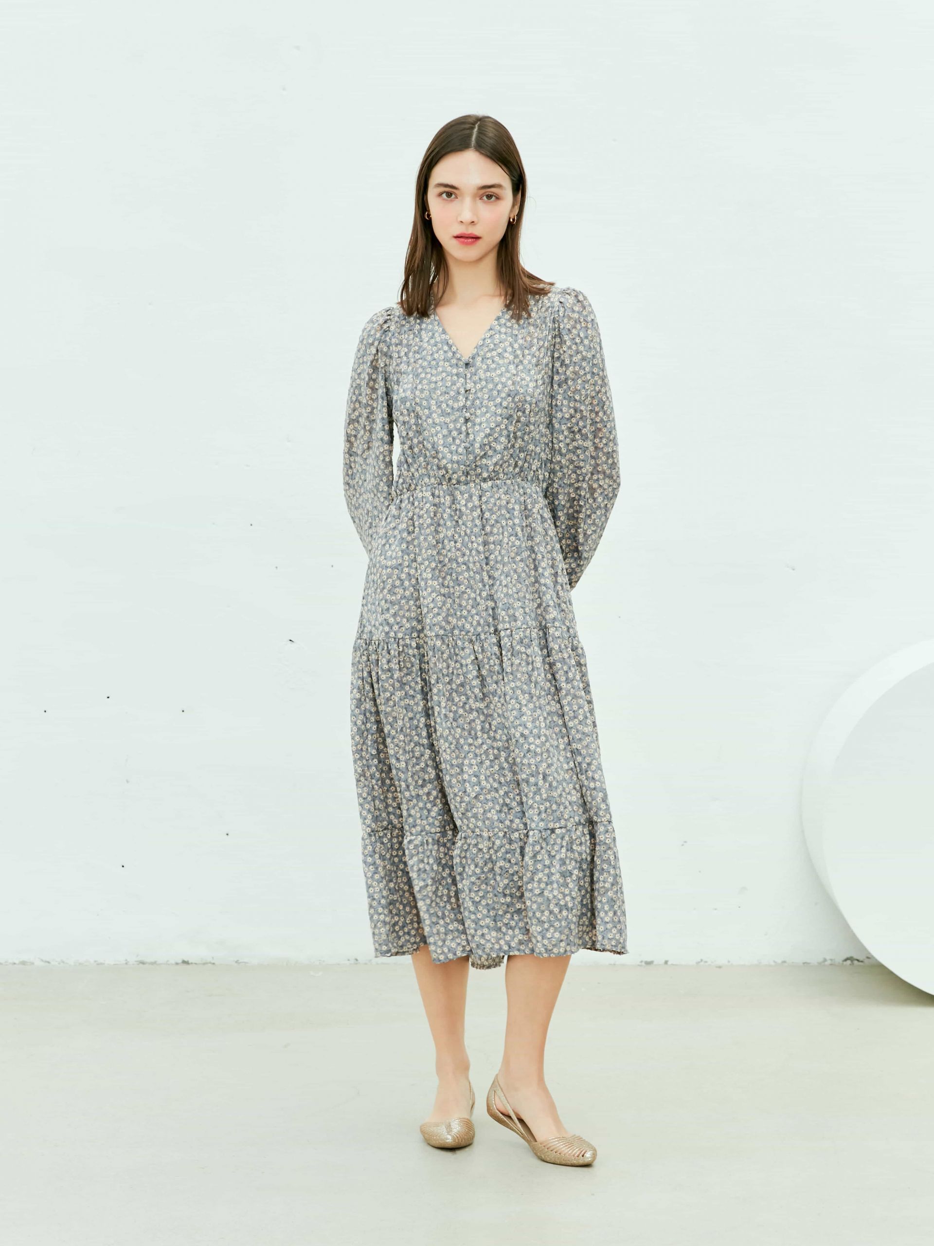 (Near&Dear) WOMAN Chiffon flower jacquard maxi dress_GREY
