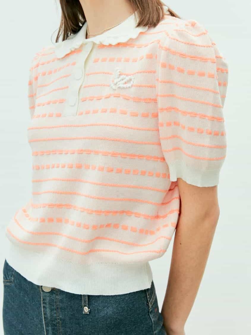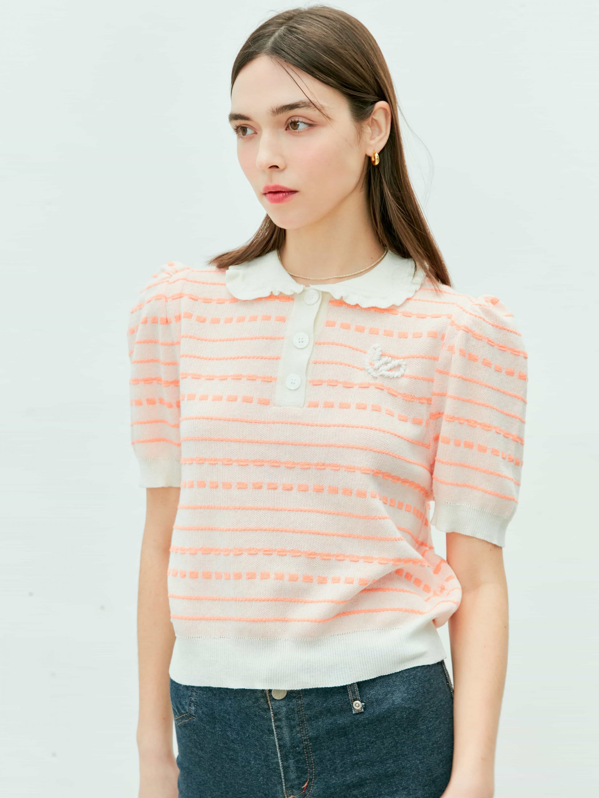 (Near&Dear) WOMAN Ruffled collar knit top_ORANGE