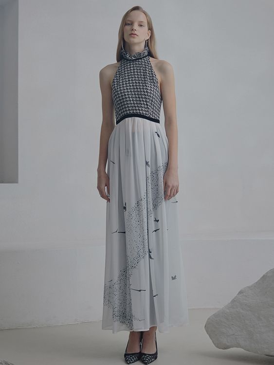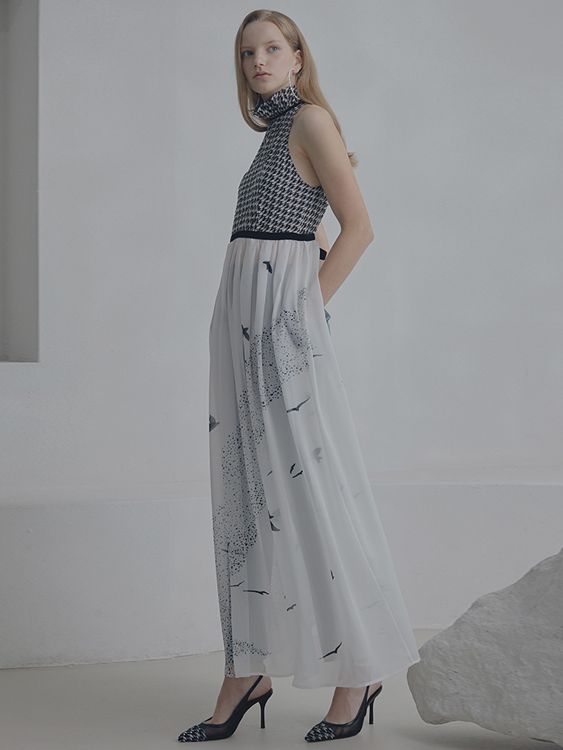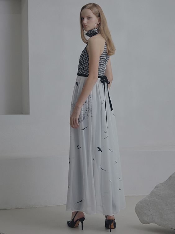 (iCE GARDEN) HOUNDSTOOTH PRINT APRON GOWN_JET BLACK