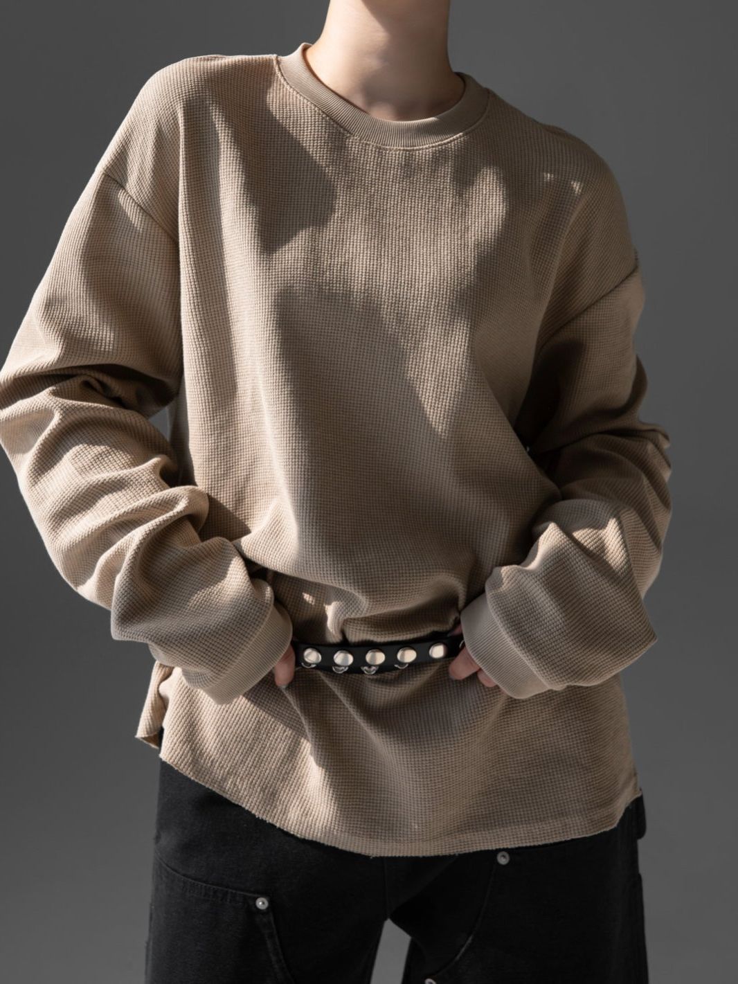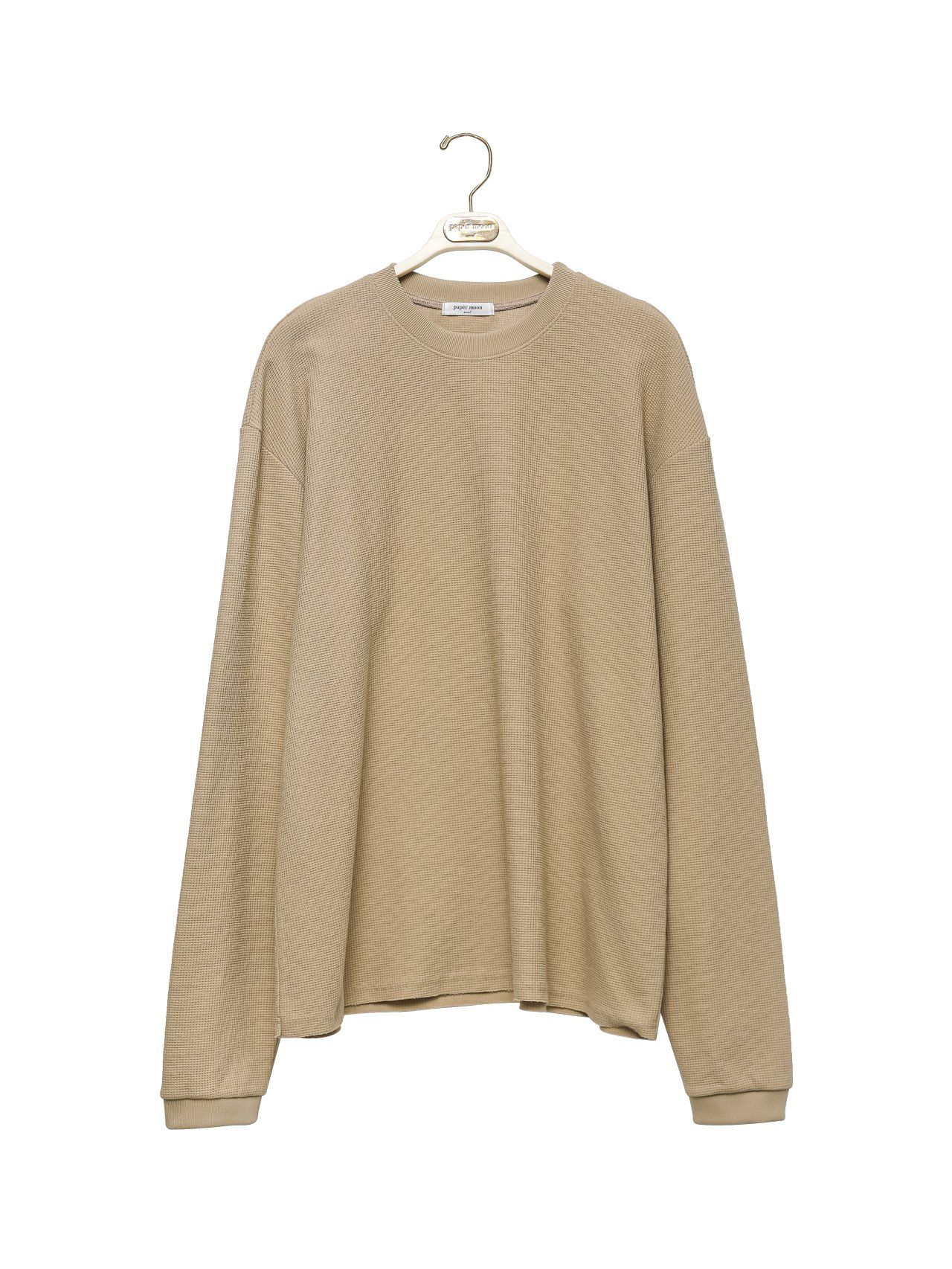 (PAPER MOON) WAFFLE FABRIC OVERSIZED LONG SLEEVED T - SHIRT : BEIGE