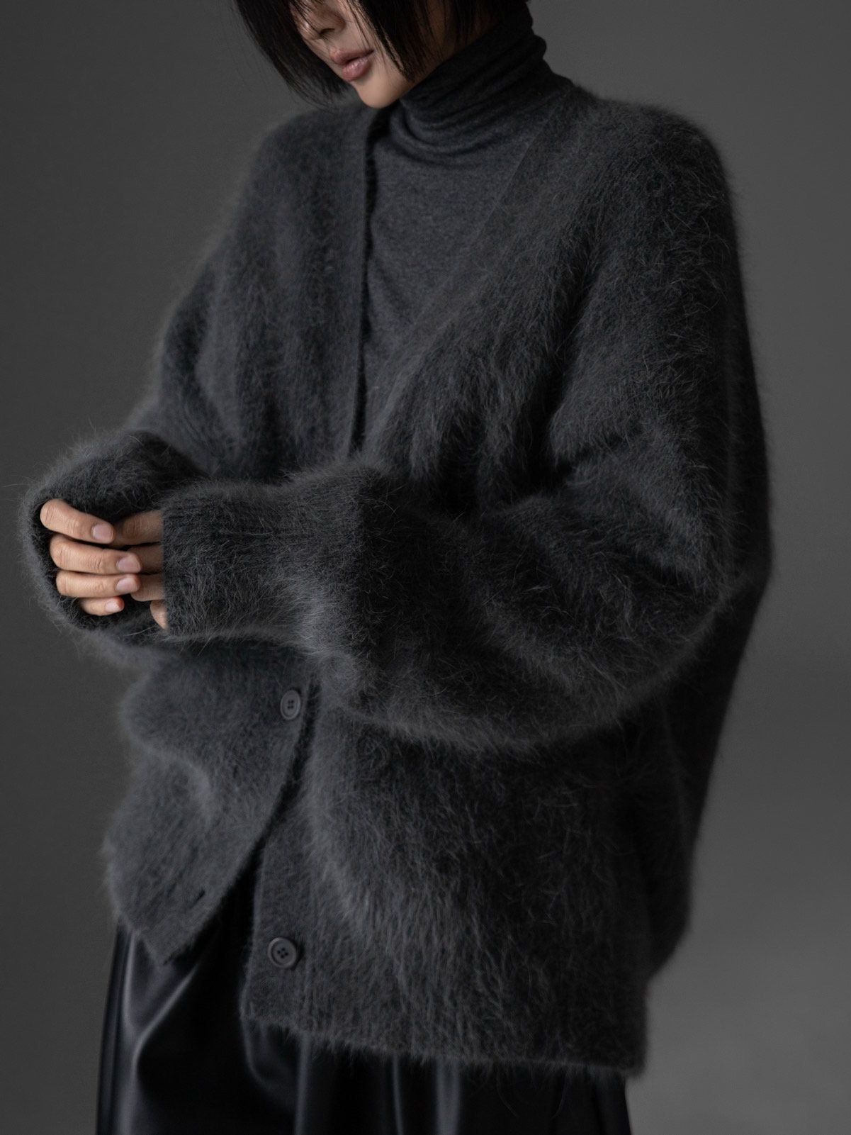 (PAPER MOON) LUX MINK ANGORA OVERSIZED KNIT CARDIGAN_CHARCOAL GREY