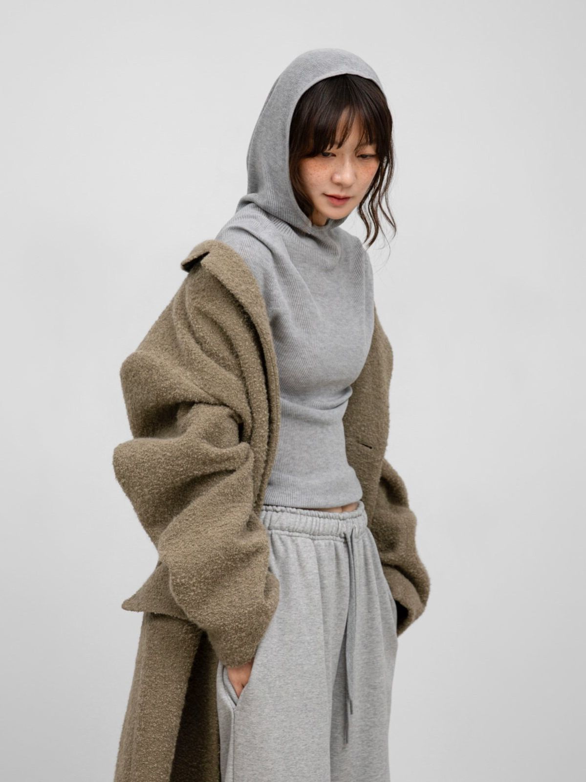 (PAPER MOON) WHOLE GARMENT HOODED KNIT TOP_HEATHER GREY