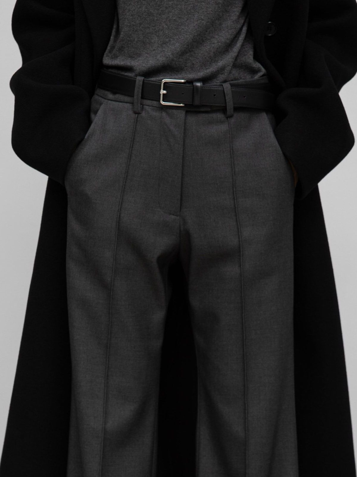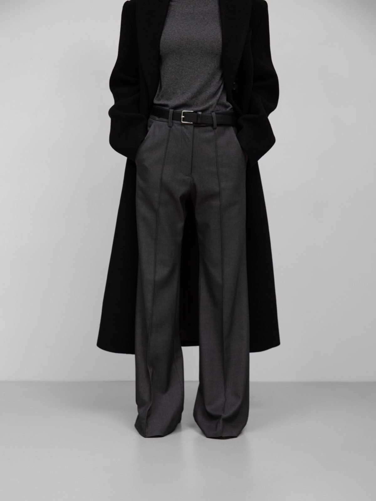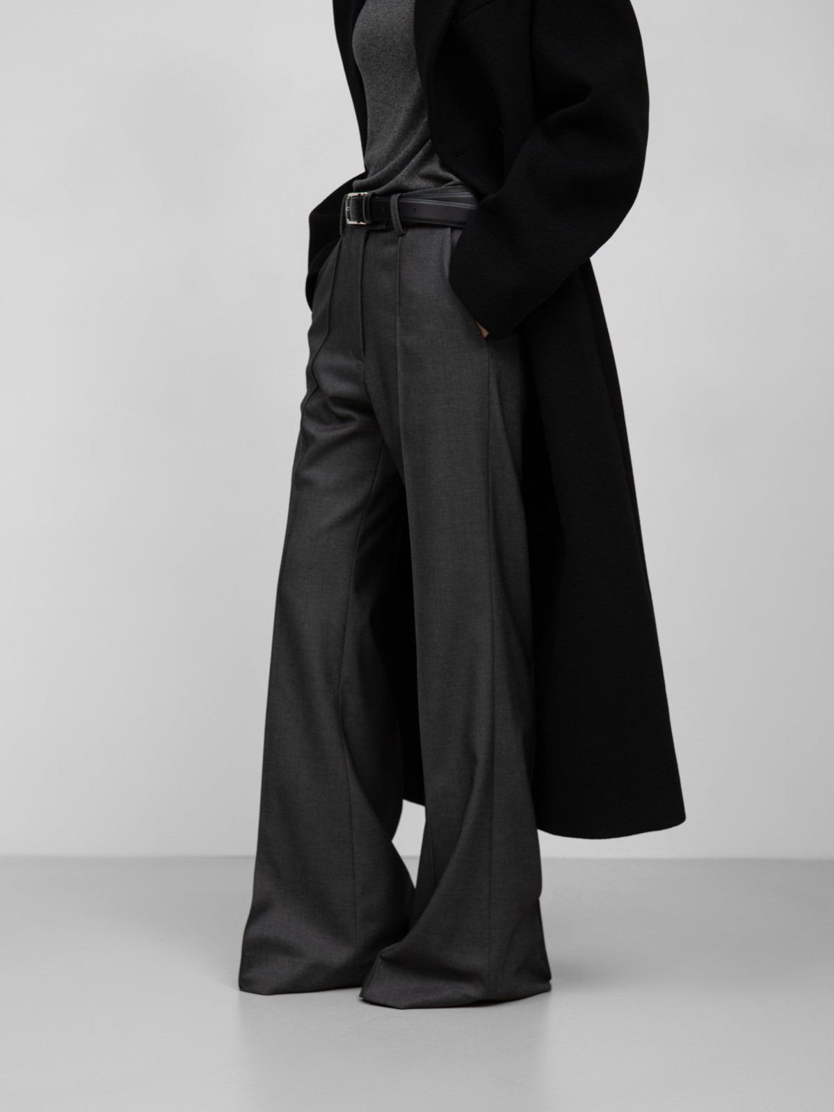 (PAPER MOON) FRONT CREASE PINTUCK FLARED PANTS_BLACK
