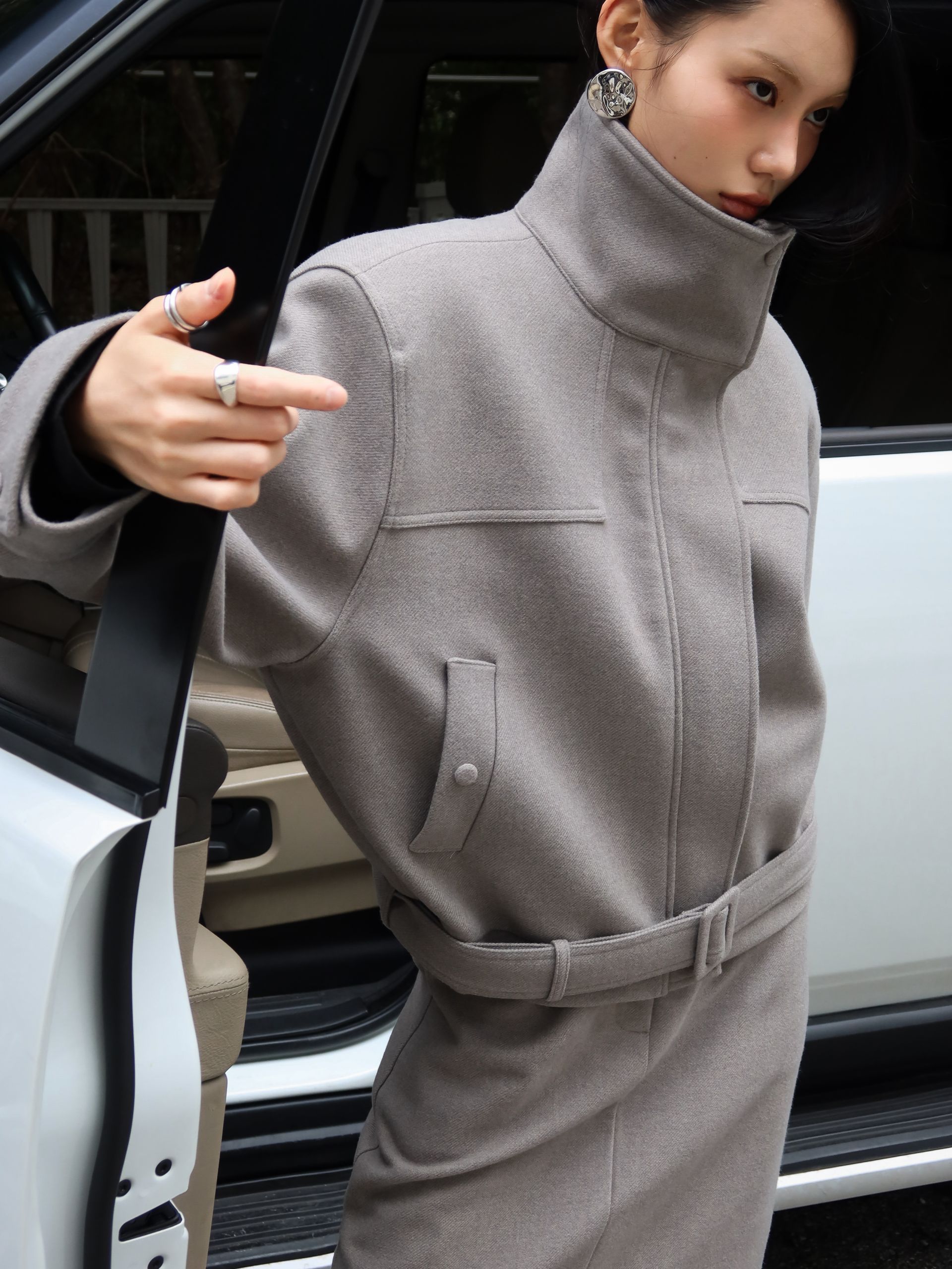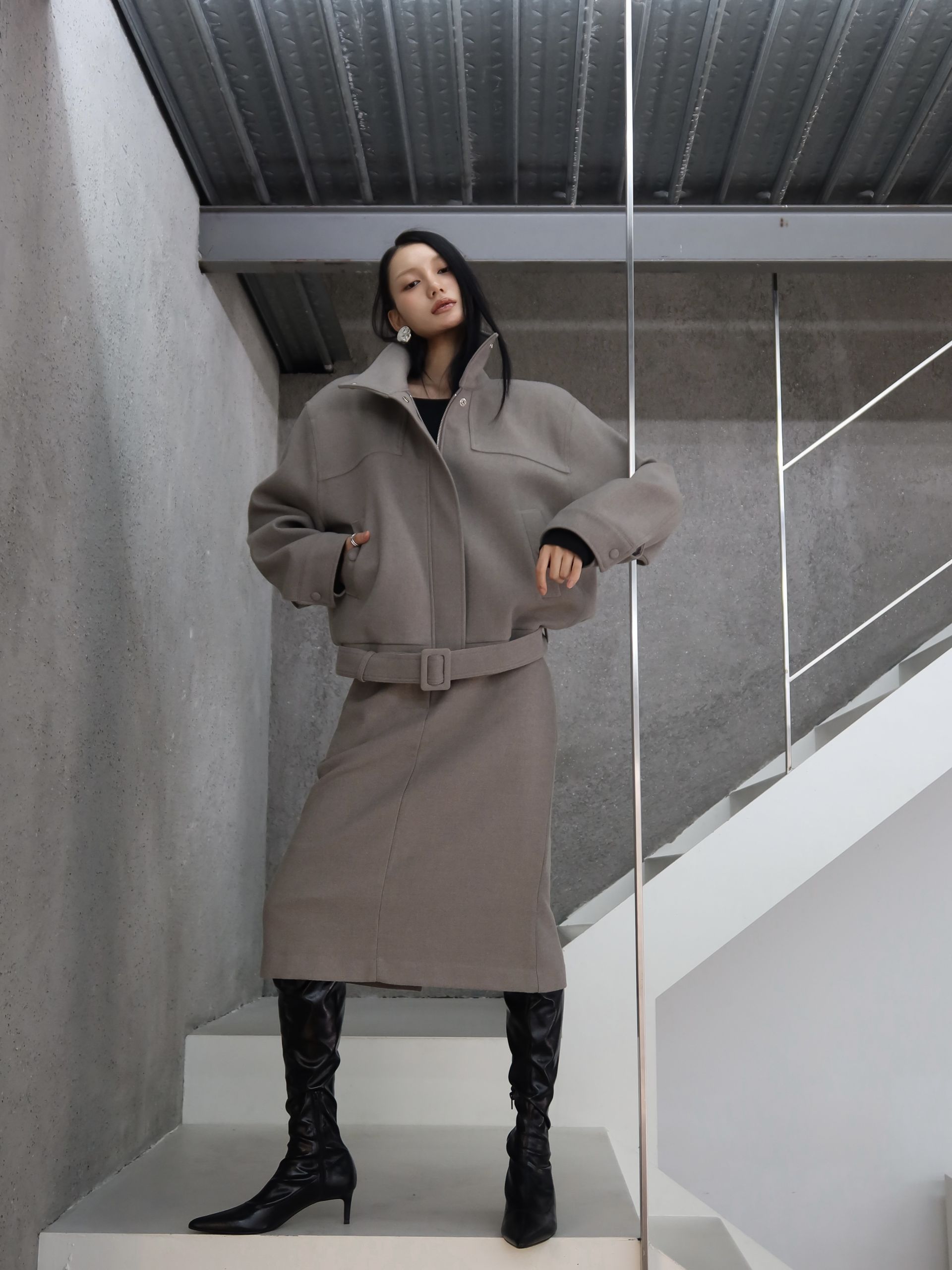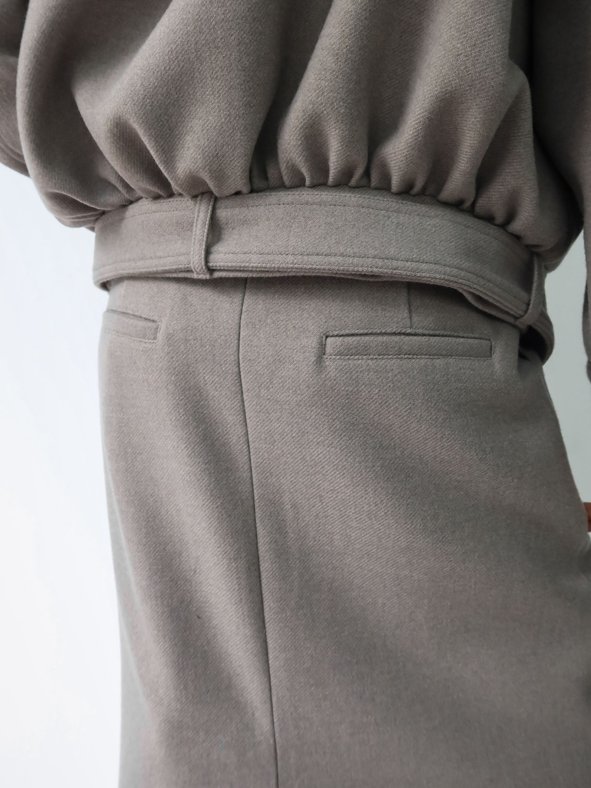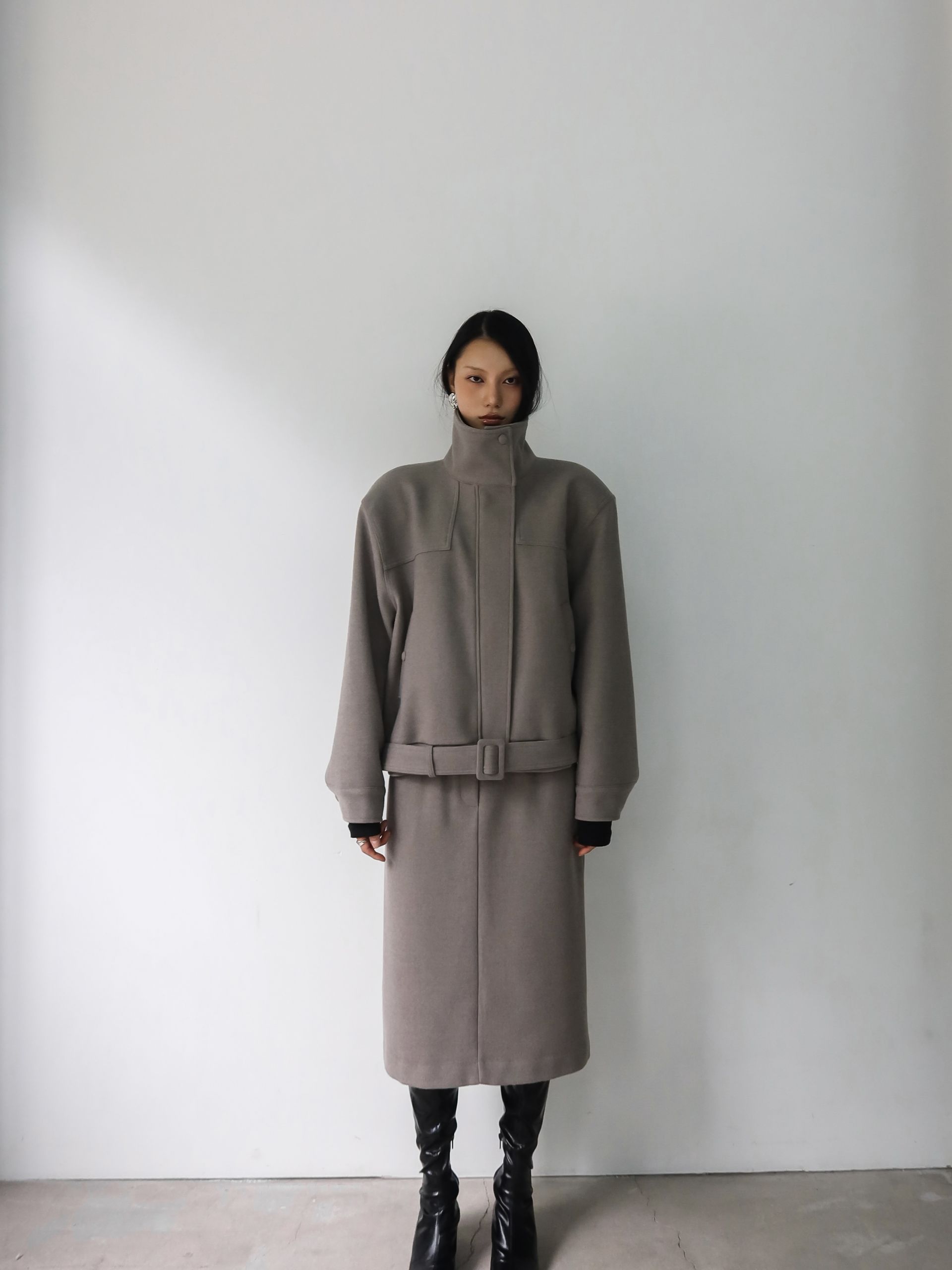 (BESIDE YOU) WOOL HIGH BOMBER JACKET + SLACKS (SET)_GRAY