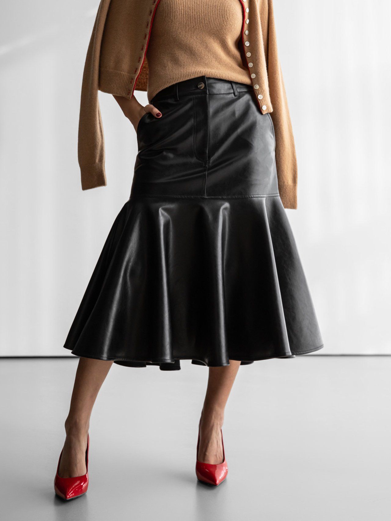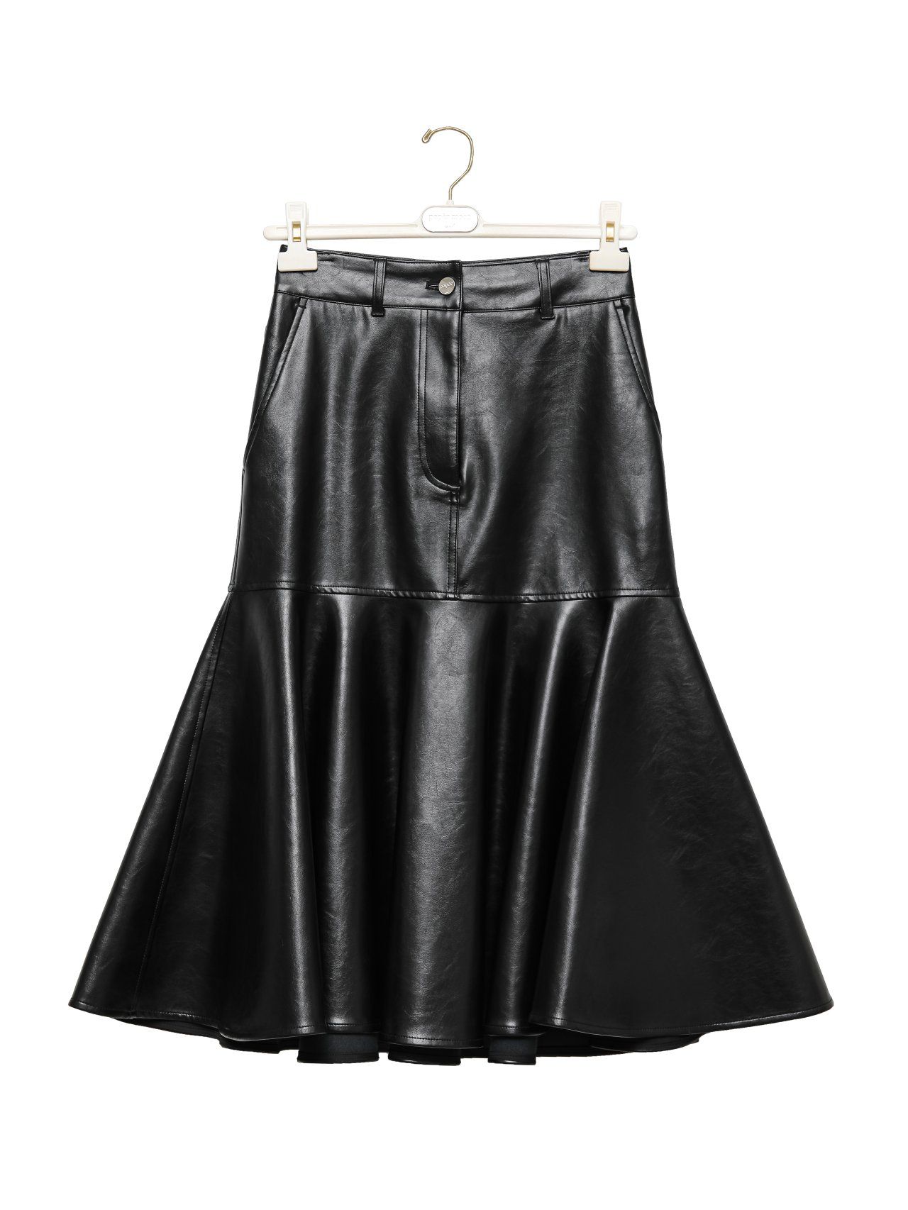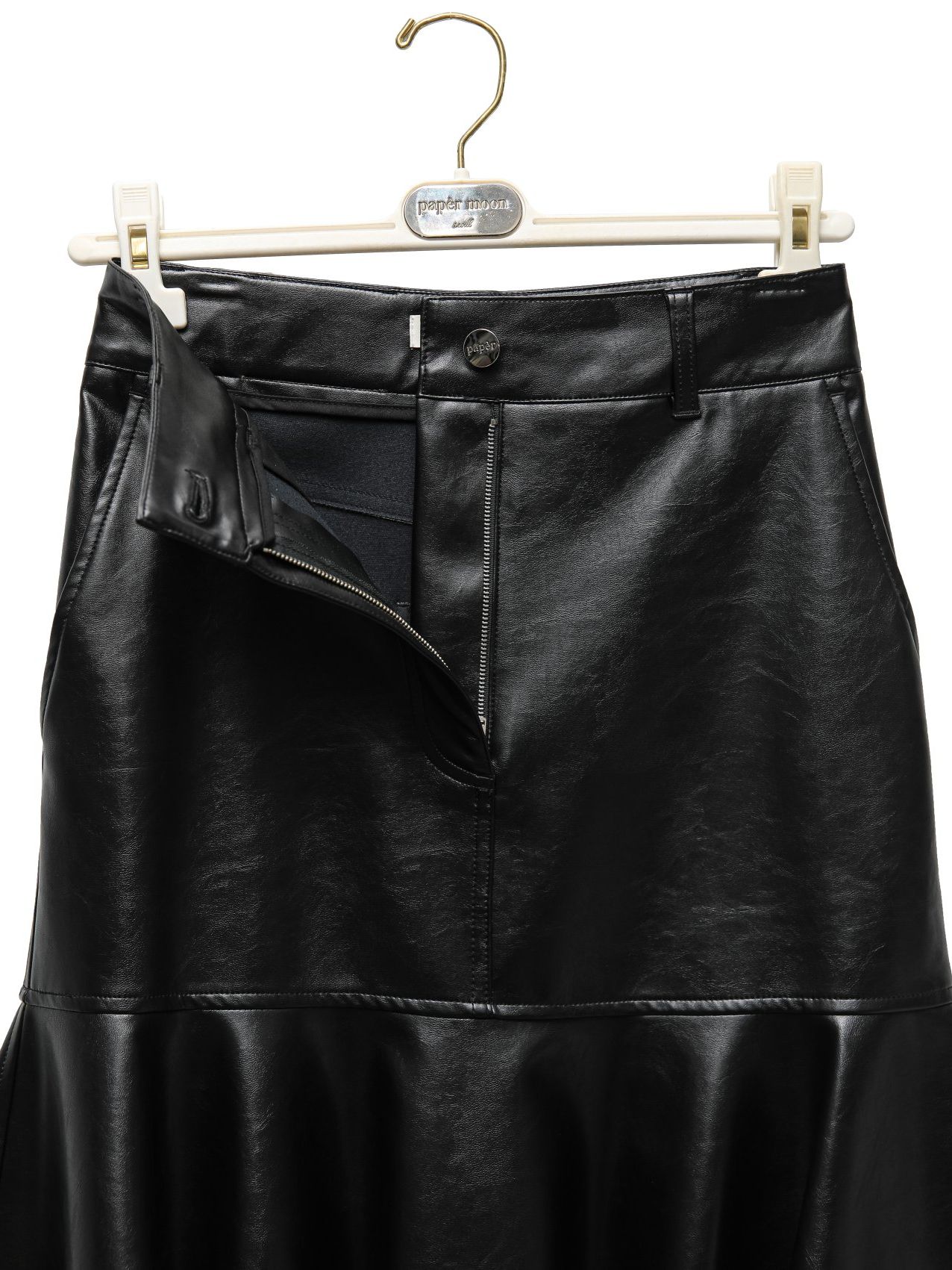 (PAPER MOON) VEGAN LEATHER MERMAID PEPLUM MIDI SKIRT : BLACK