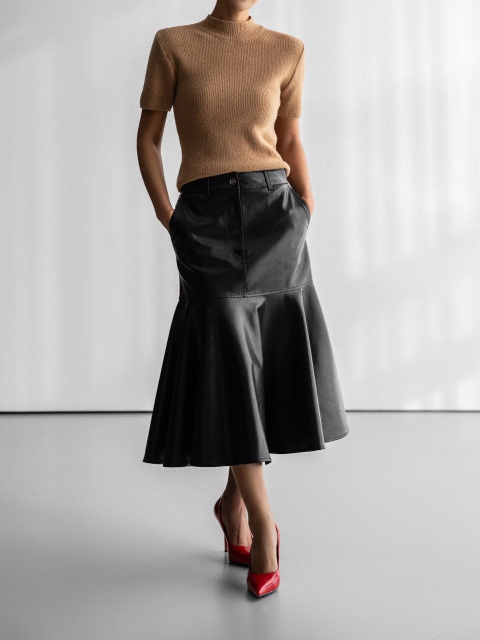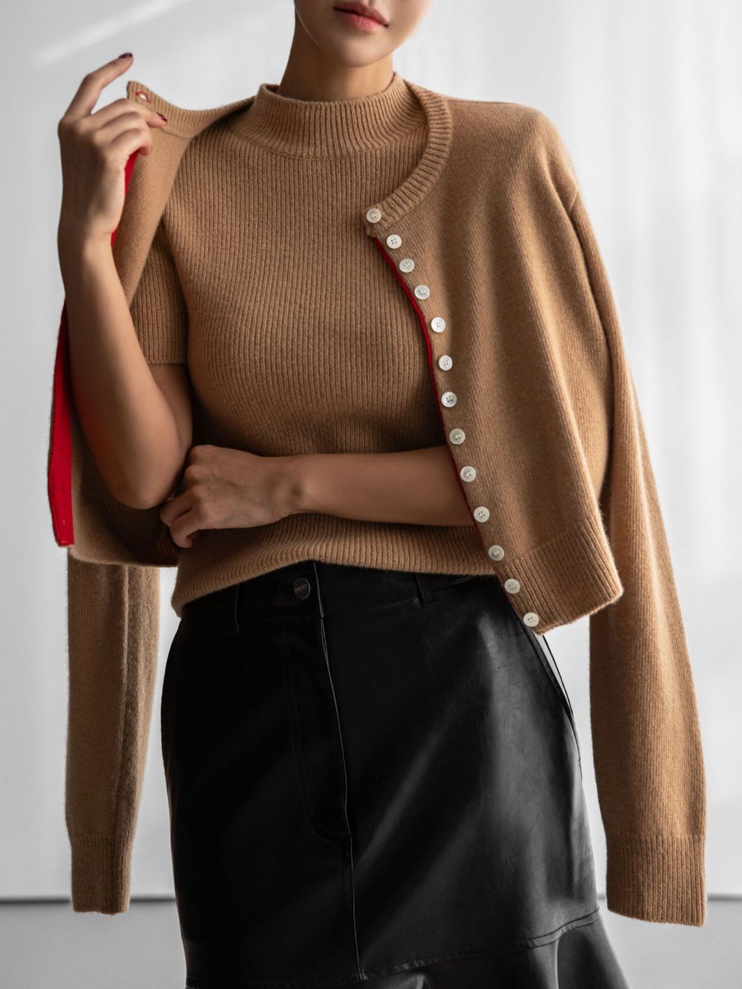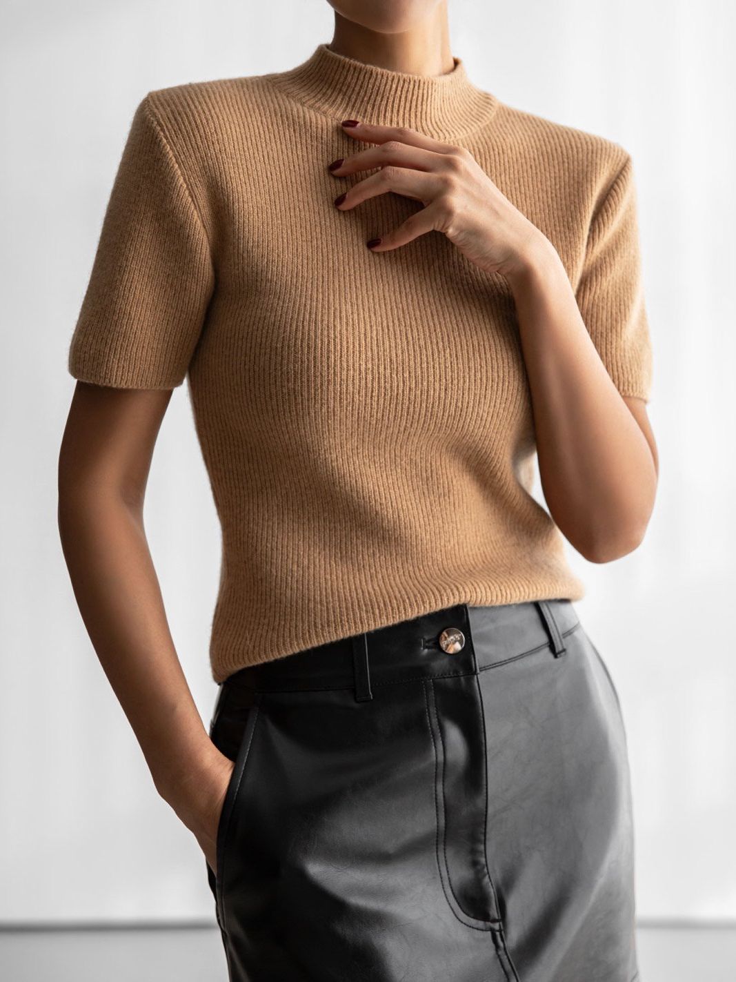 (PAPER MOON) CASHMERE WOOL HALF TURTLE NECK CROPPED KNIT TOP : CAMEL BEIGE