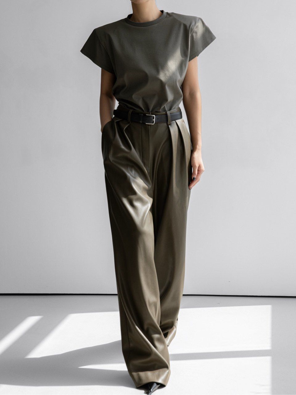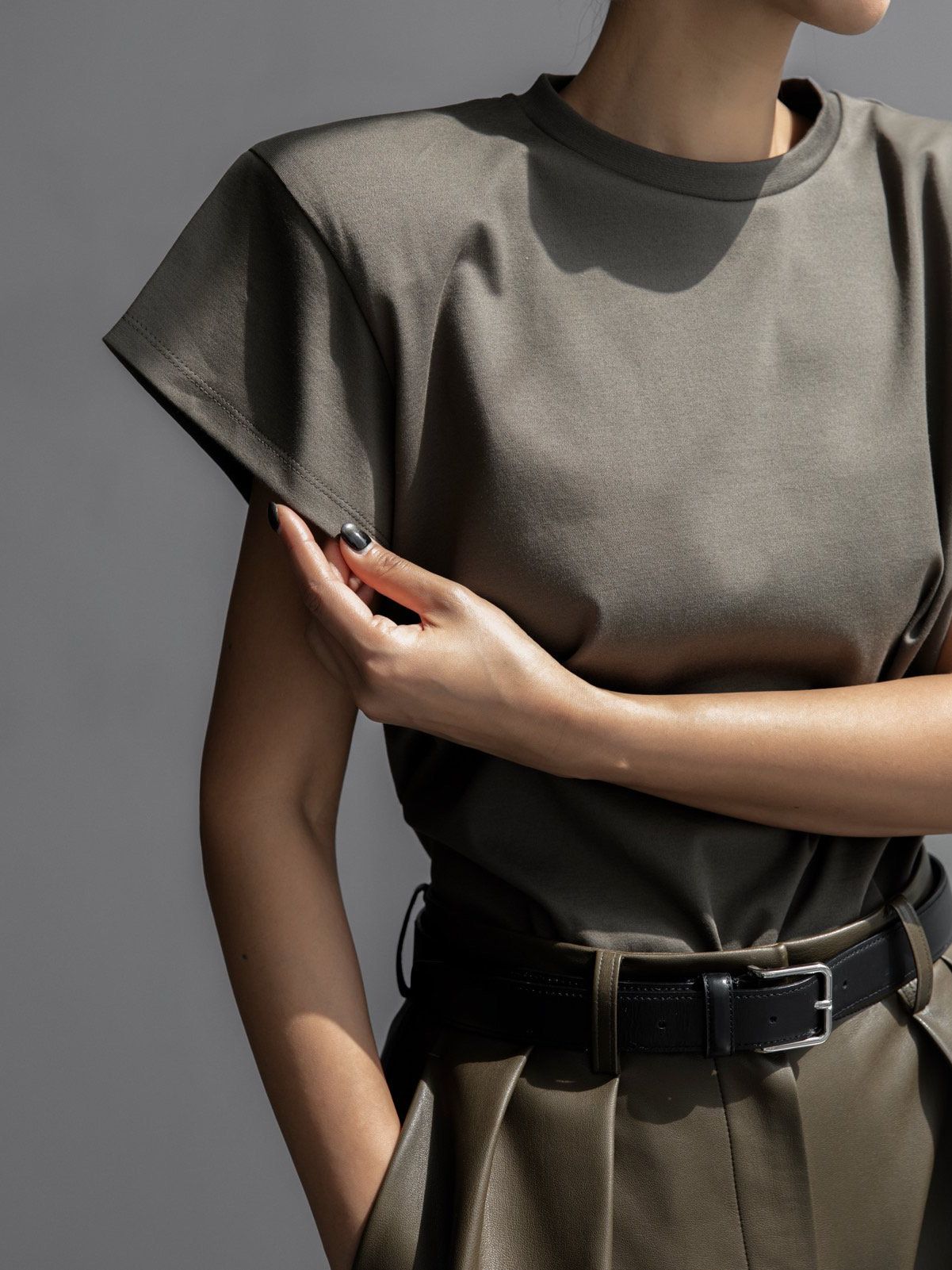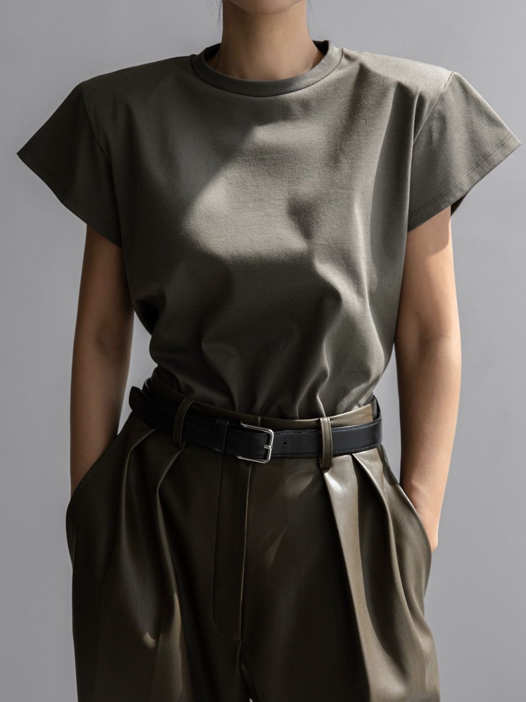 (PAPER MOON) PADDED SHOULDER WING SLEEVES TEE : KHAKI