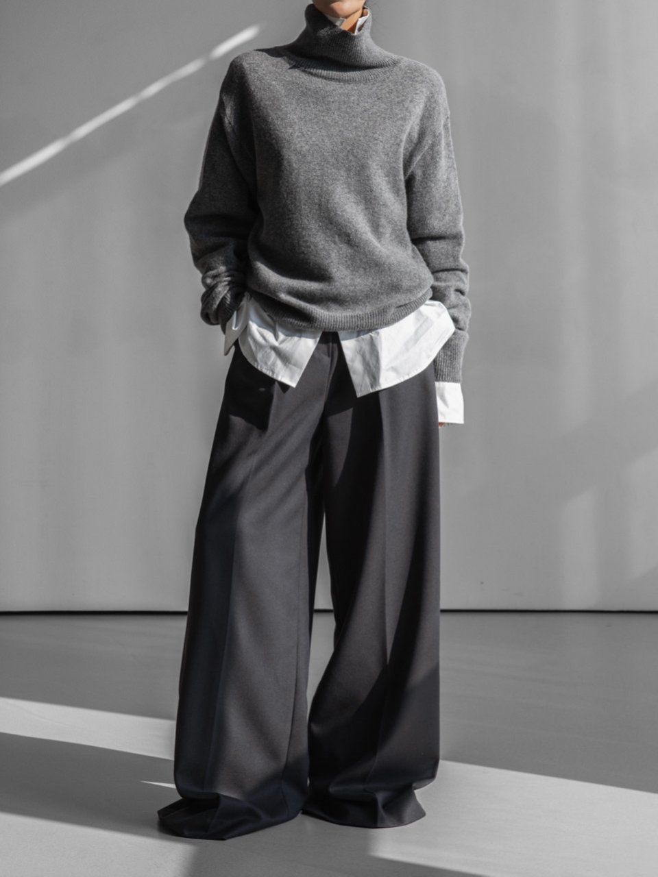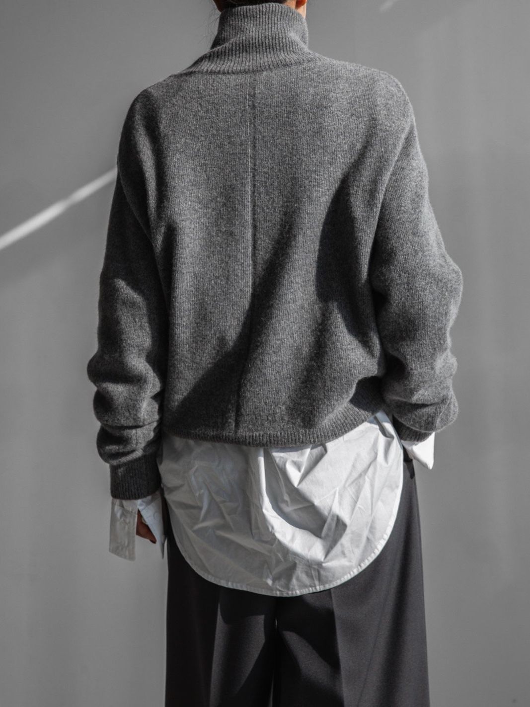 (PAPER MOON) CLASSIC CASHMERE BLENDED WOOL HIGH NECK KNIT TOP : HEATHER GREY