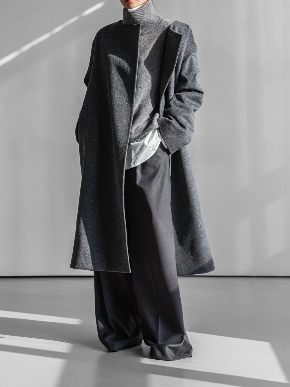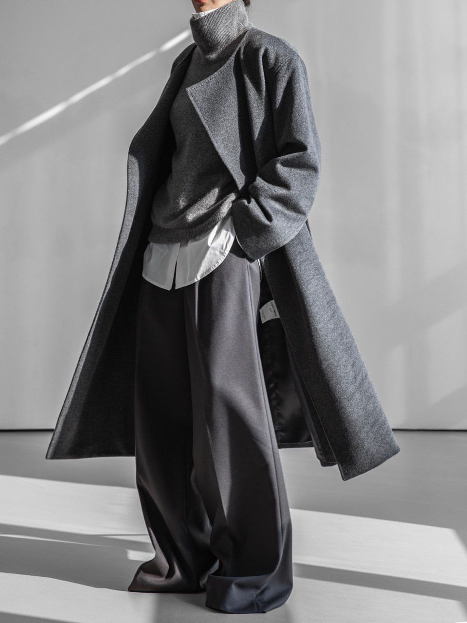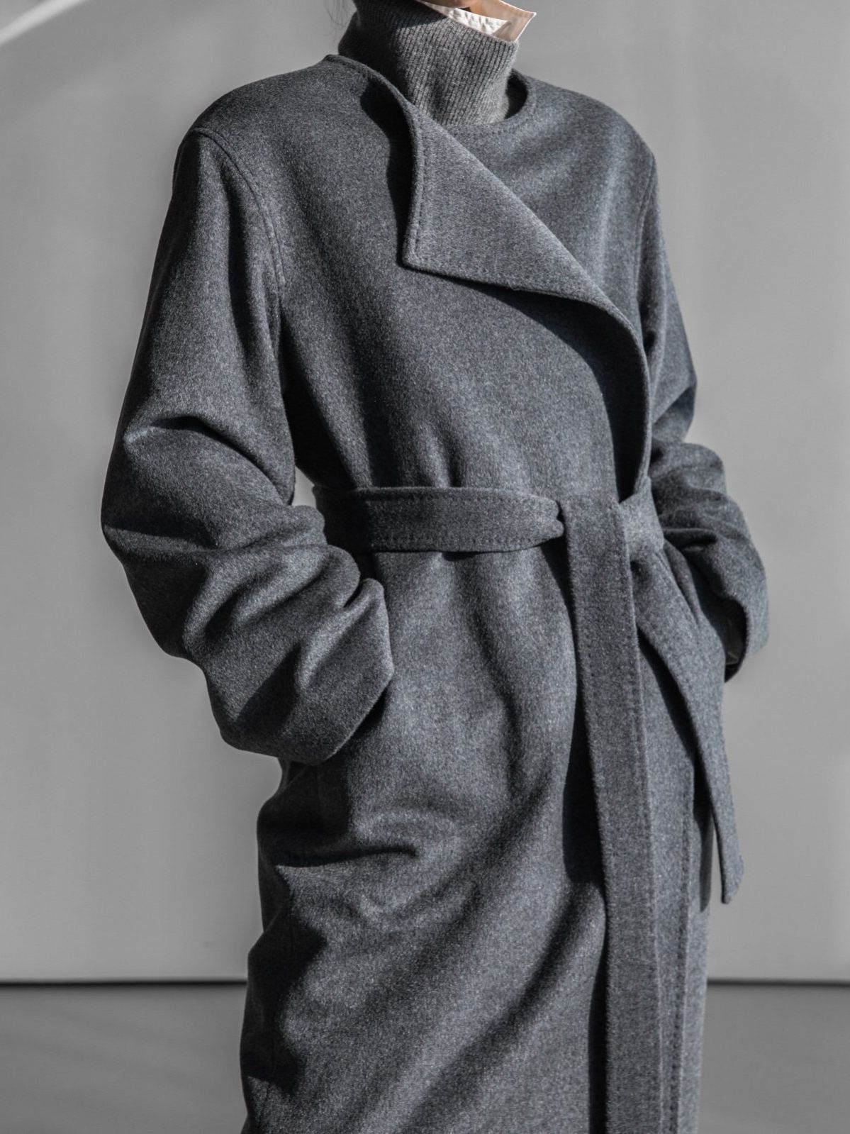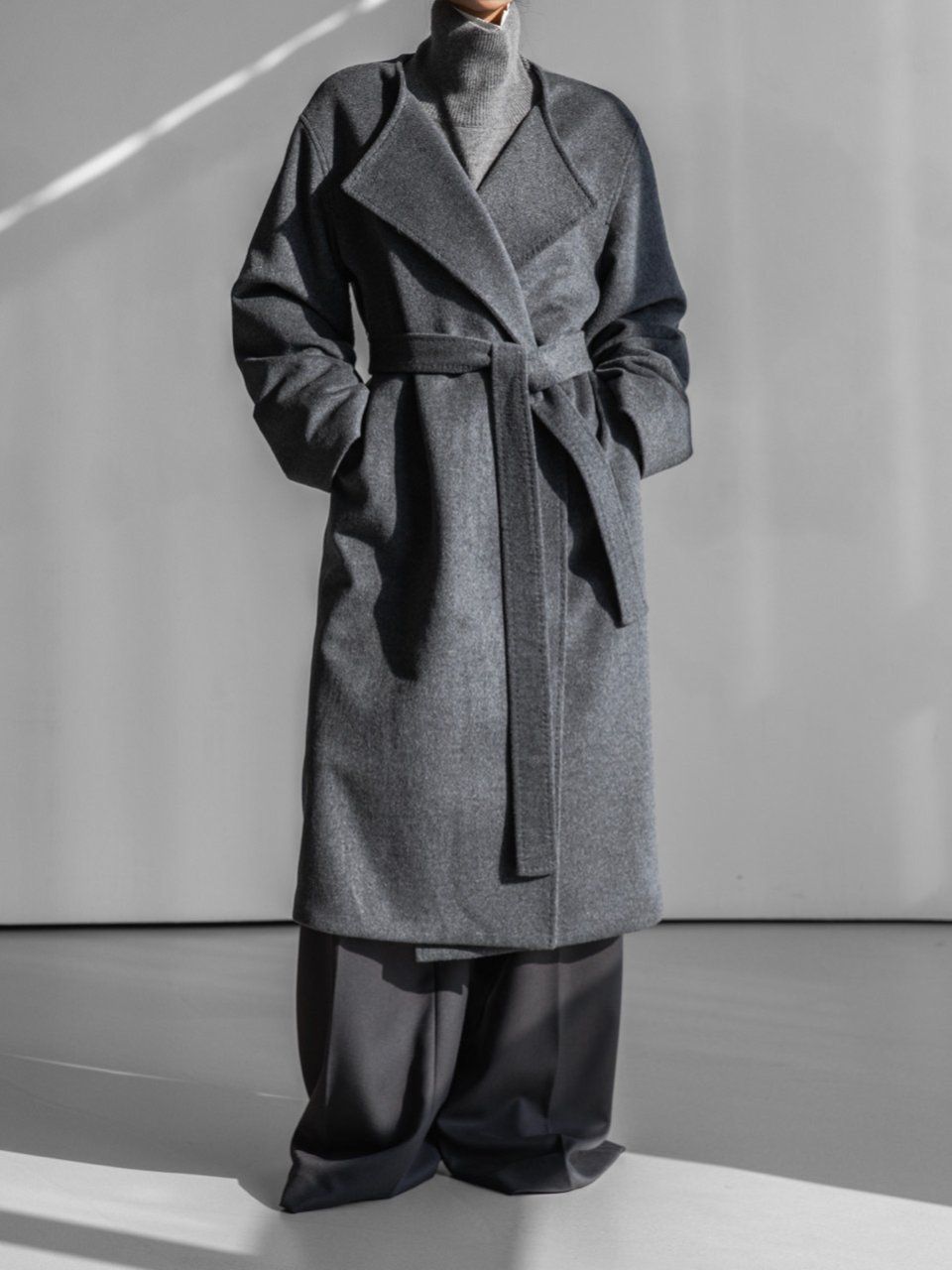 (PAPER MOON) LUX CASHMERE WOOL STITCHED POINT ROBE BELTED COAT : HEATHER GREY