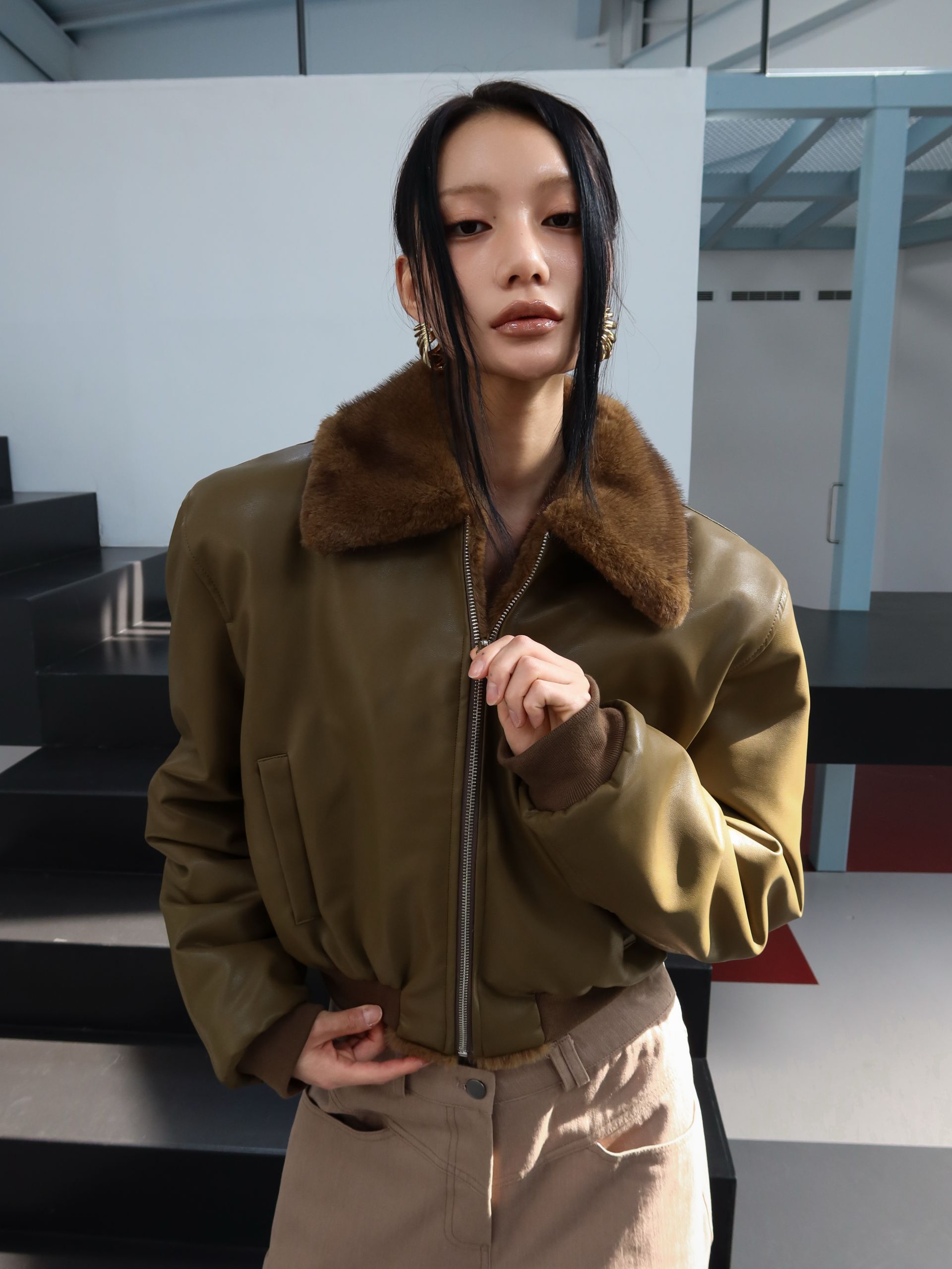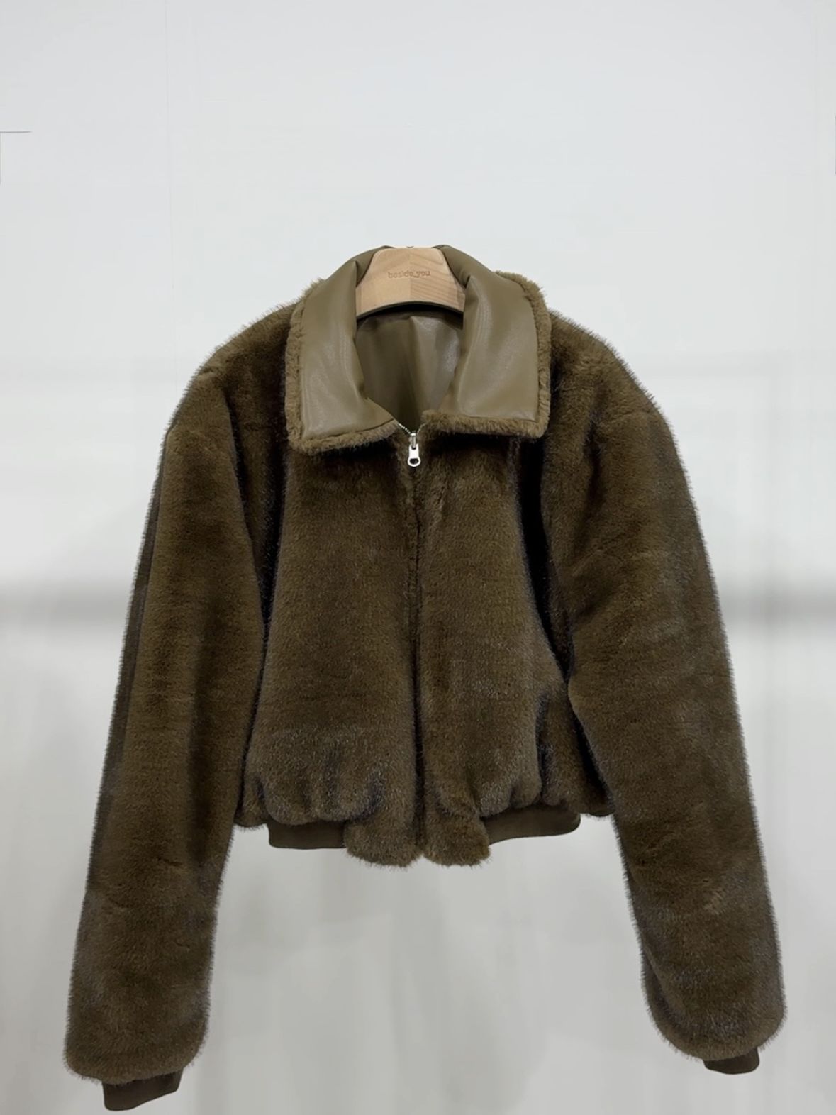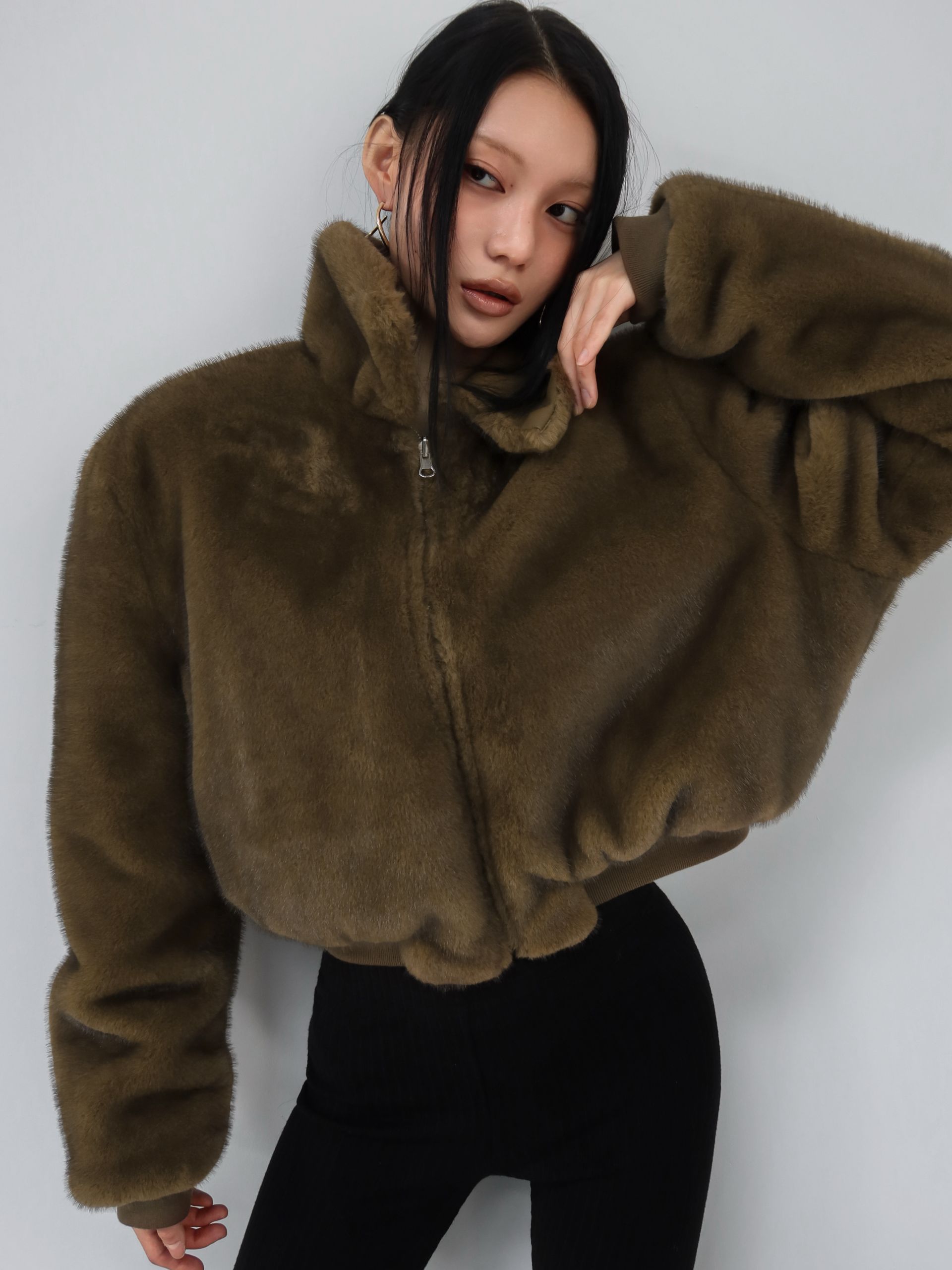 (BESIDE YOU) FUR REVERSIBLE BOMBER JACKET : OLIVE KHAKI