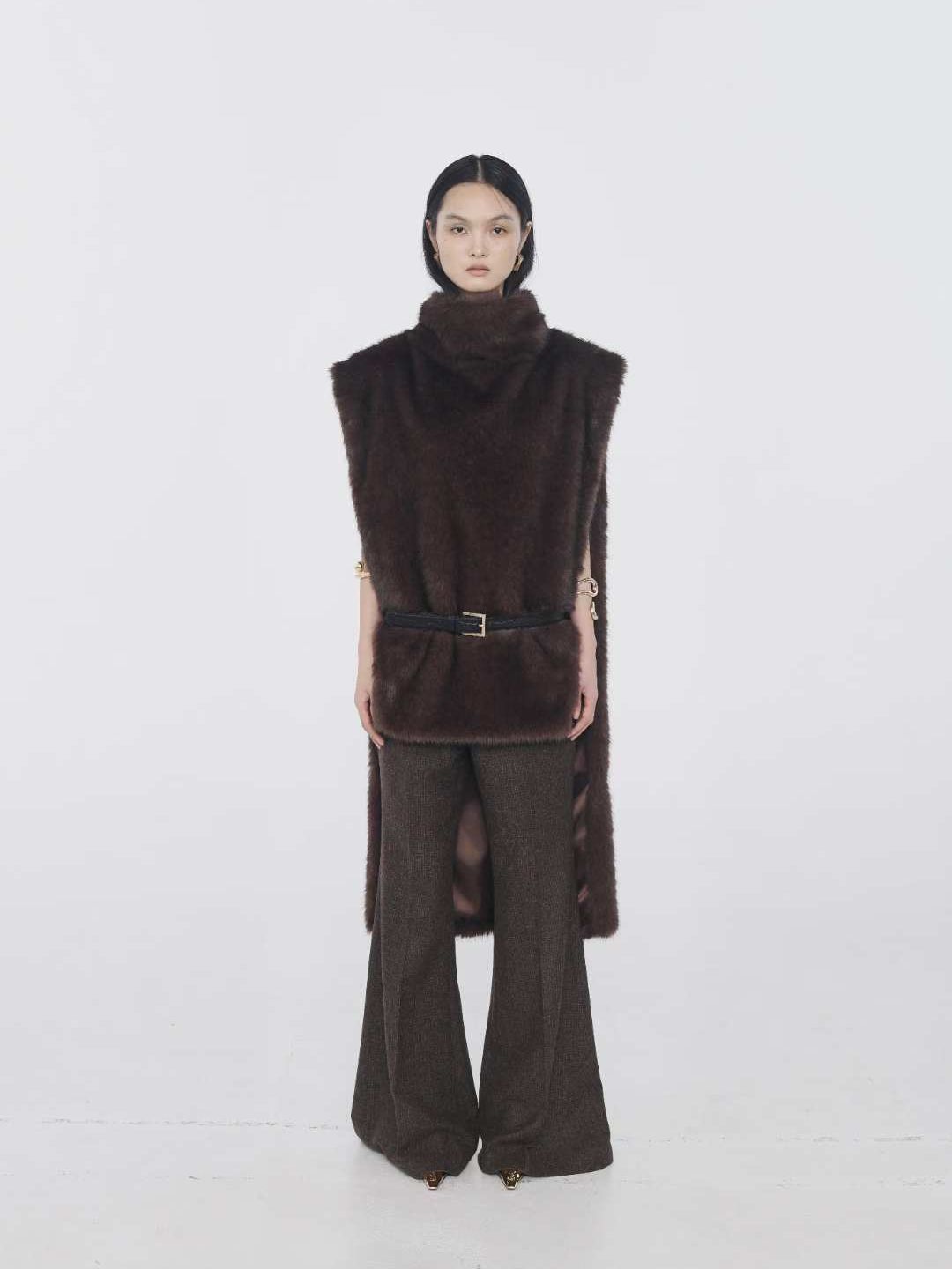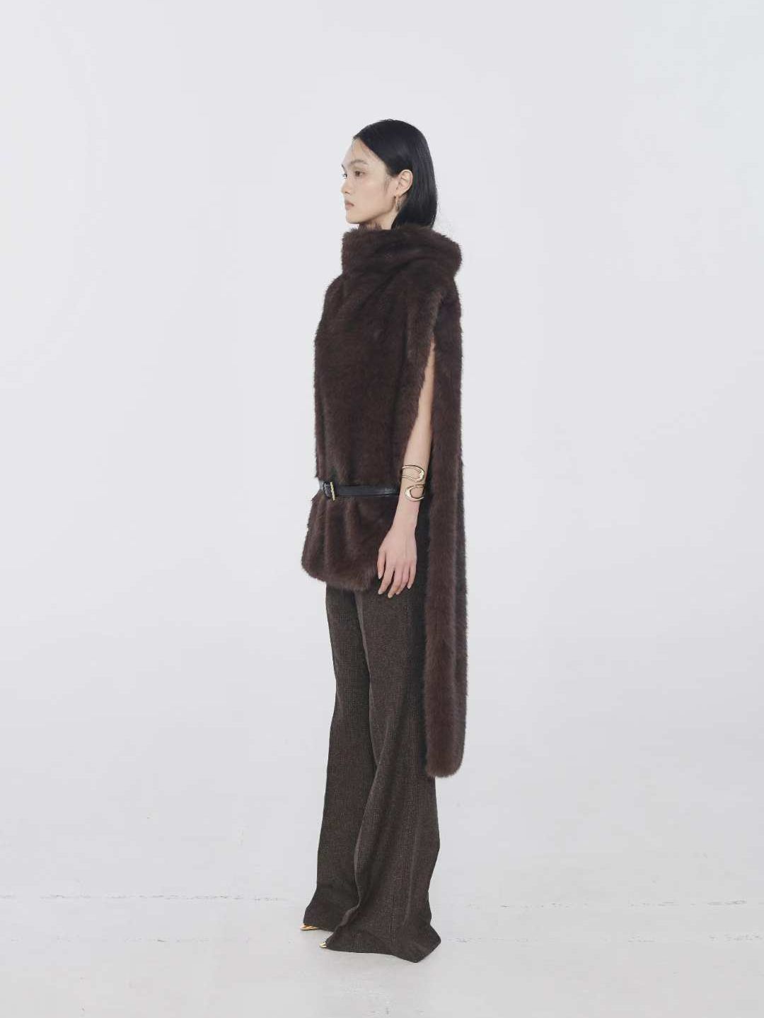 (ONE BY TWO) 25FW-3-9 FUR LONG CAPE : DARK BROWN