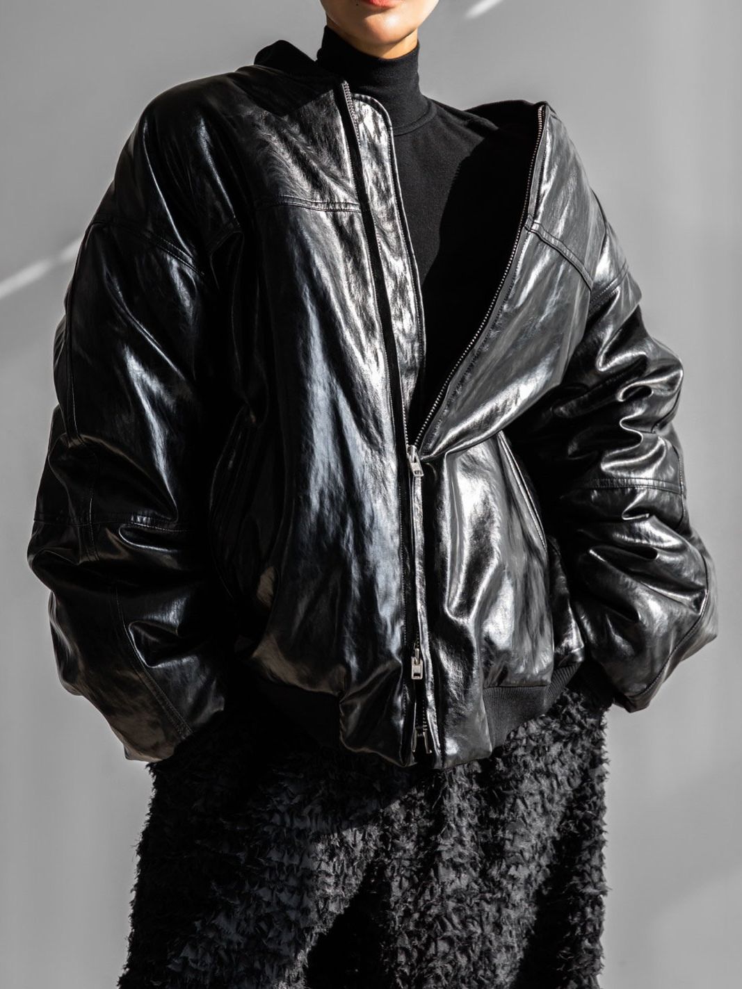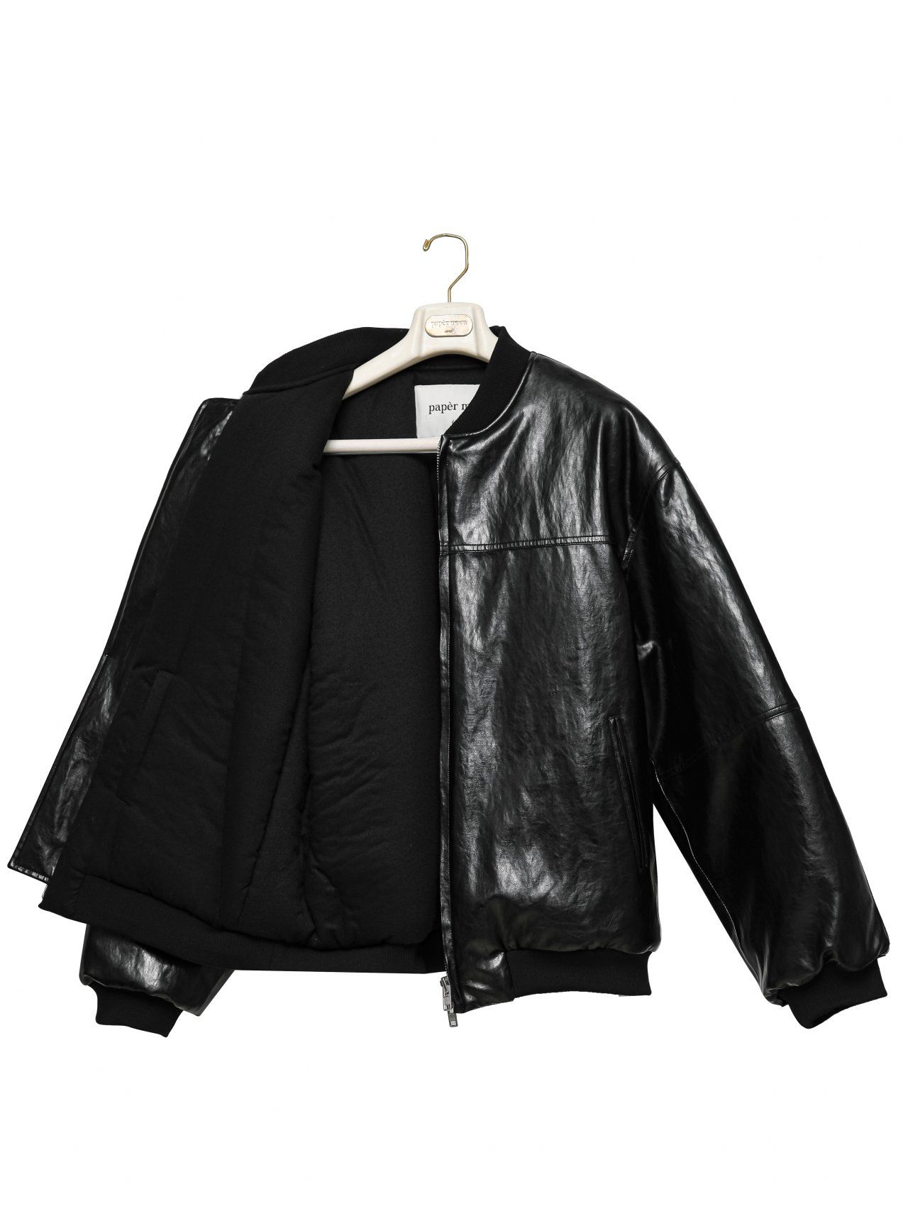(PAPER MOON) OVERSIZED VEGAN LEATHER MA - 1 BOMBER JACKET : BLACK