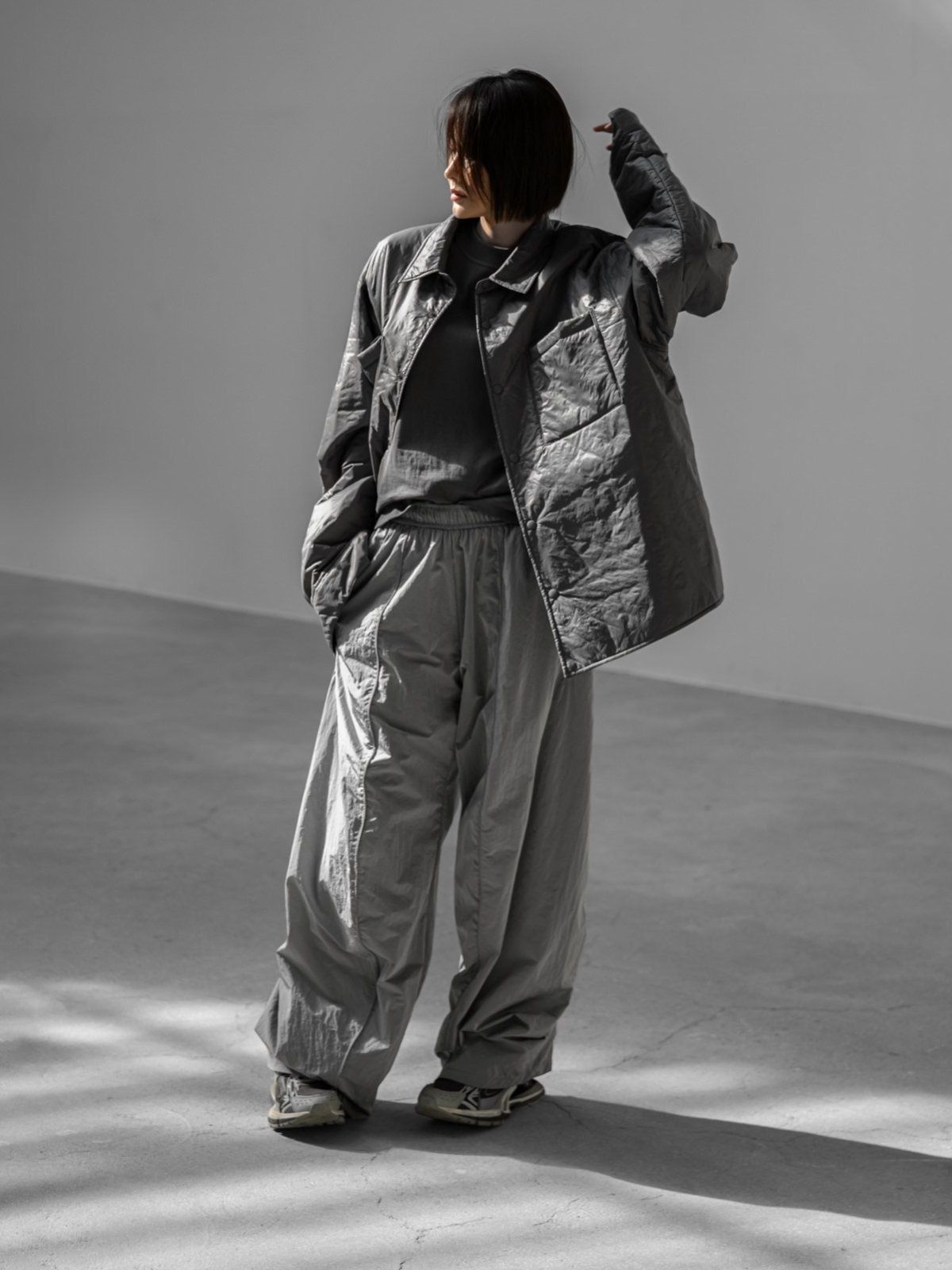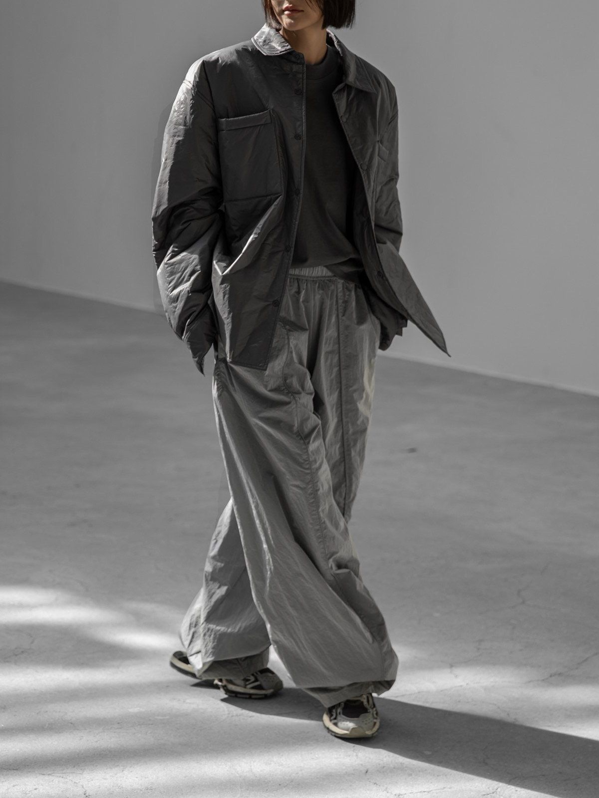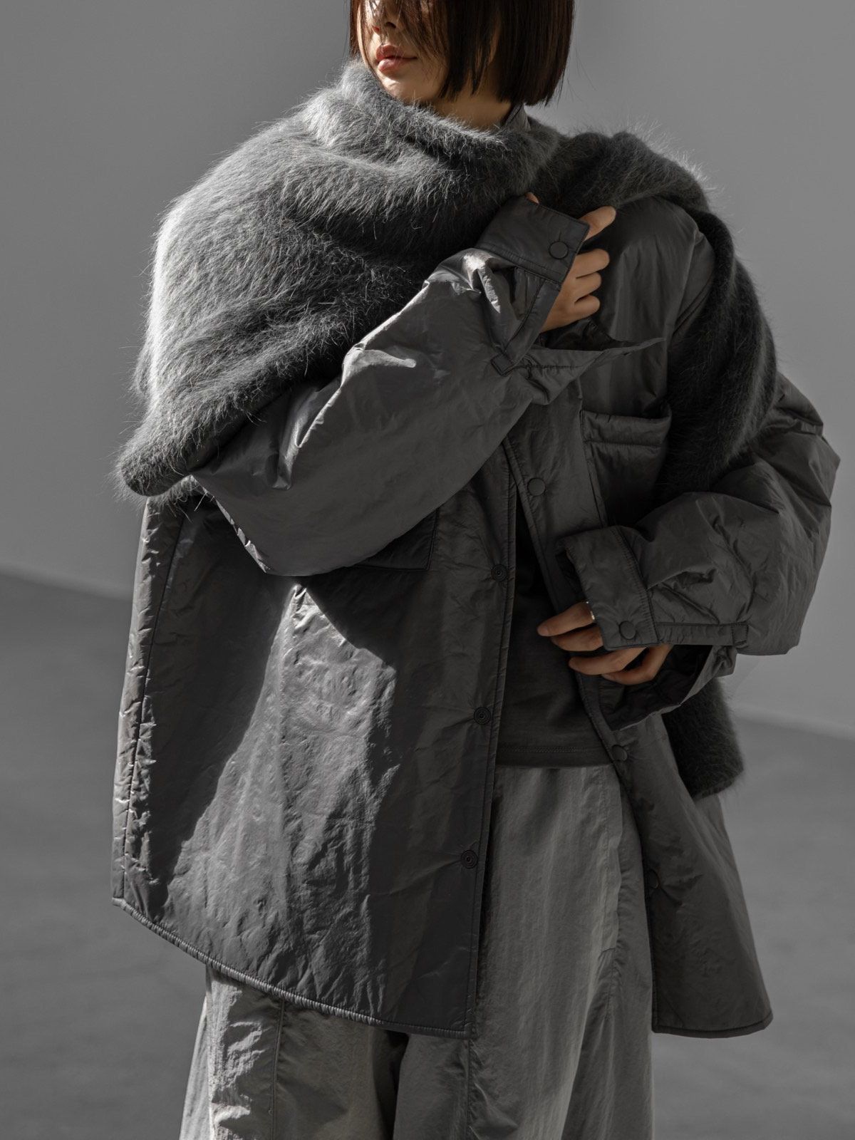 (PAPER MOON) OVERSIZED VIVID LIGHT PADDED BUTTON DOWN SHIRT : GREY