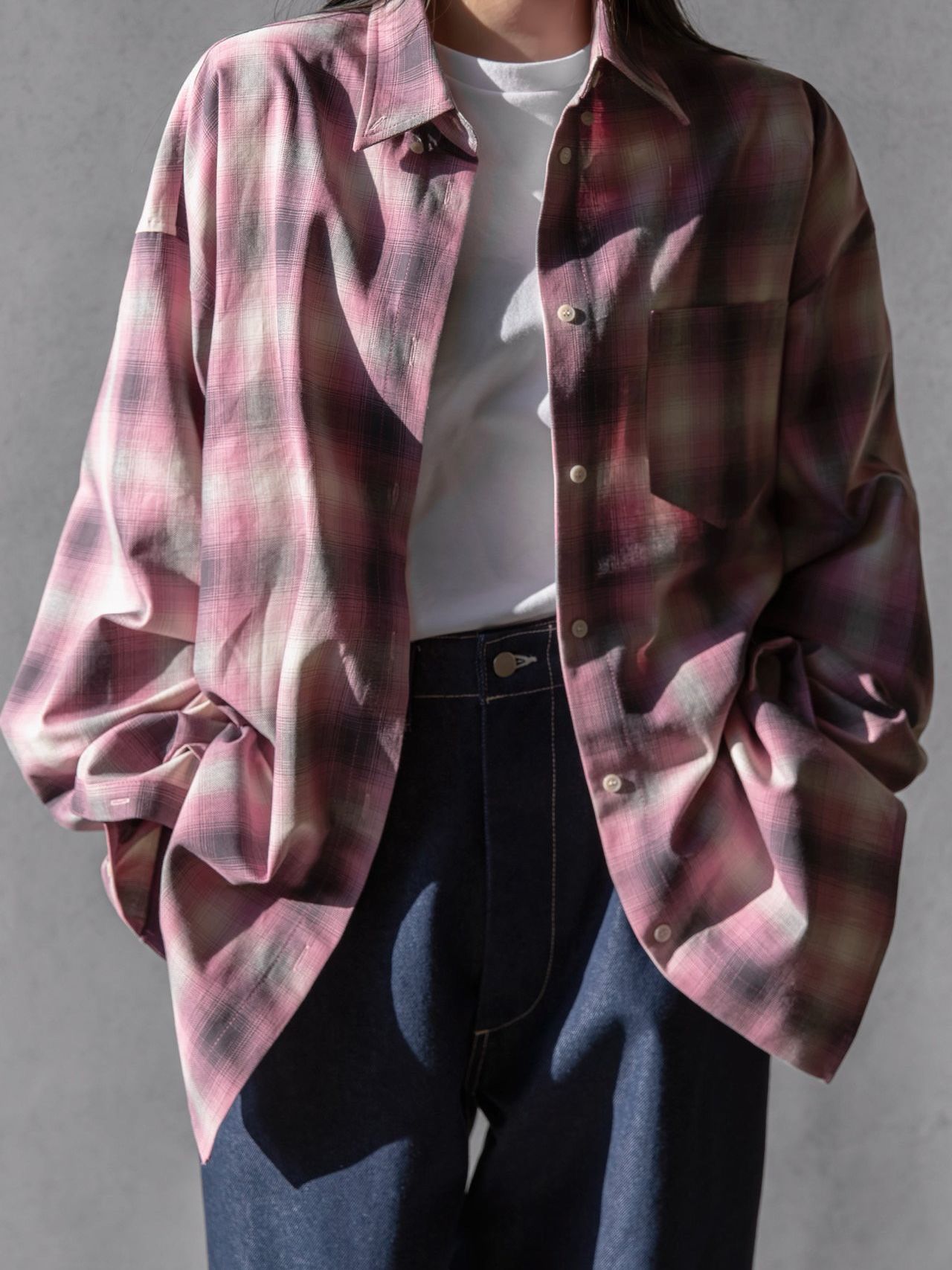 (PAPER MOON) OVERSIZED PLAID CHECK BUTTON DOWN SHIRT : PINK
