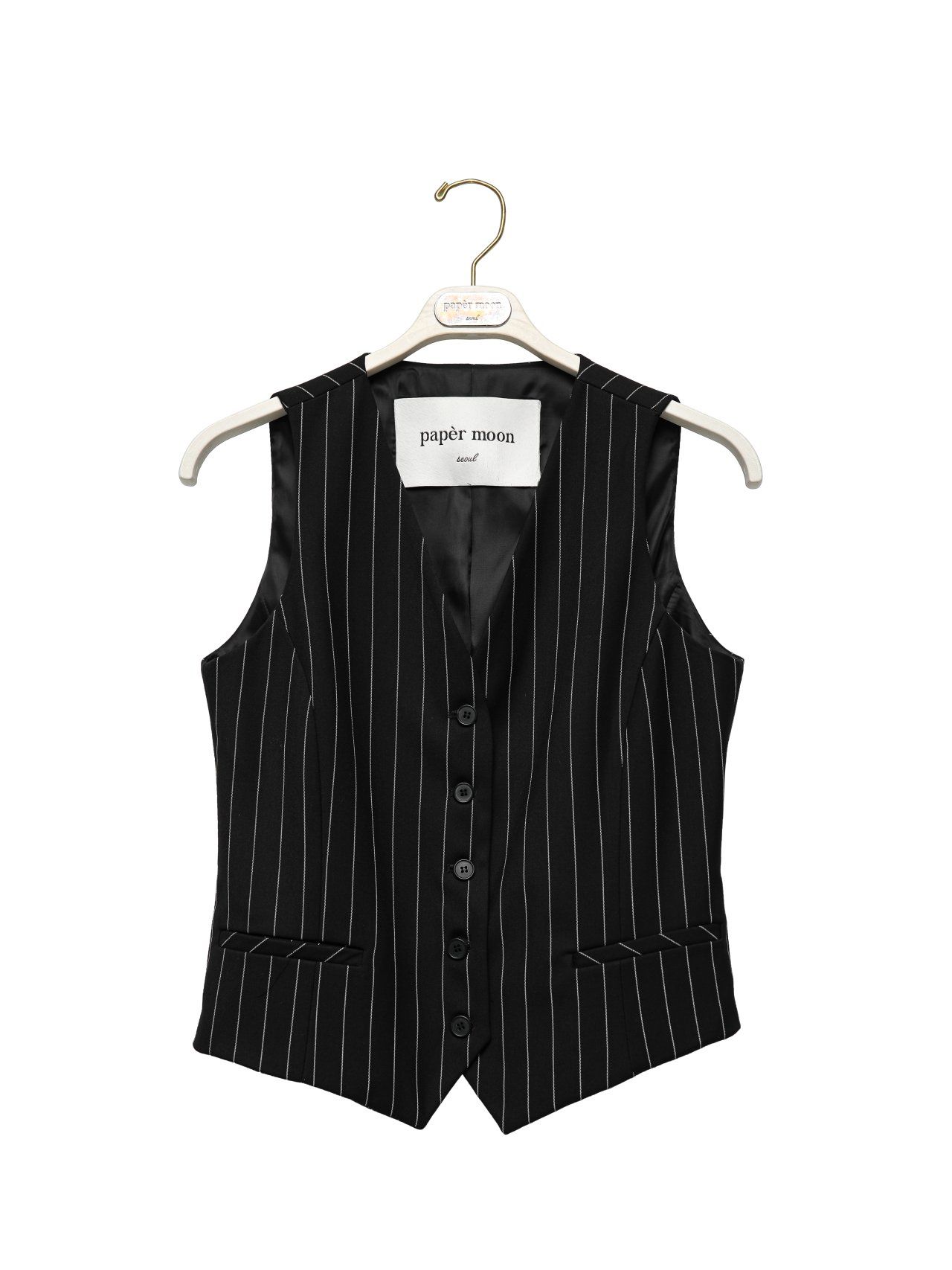 (PAPER MOON) WIDE PIN STRIPE SET UP SUIT VEST : BLACK PIN STRIPE