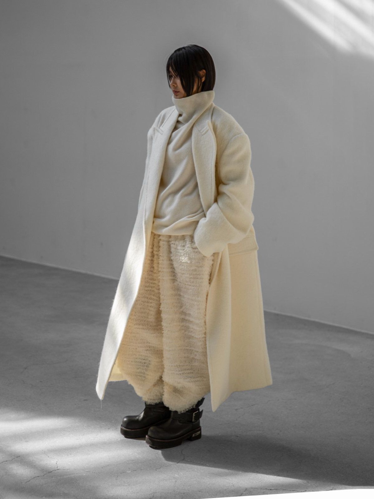 (PAPER MOON) CLASSIC CASHMERE BLENDED WOOL HIGH NECK KNIT TOP : CREAM