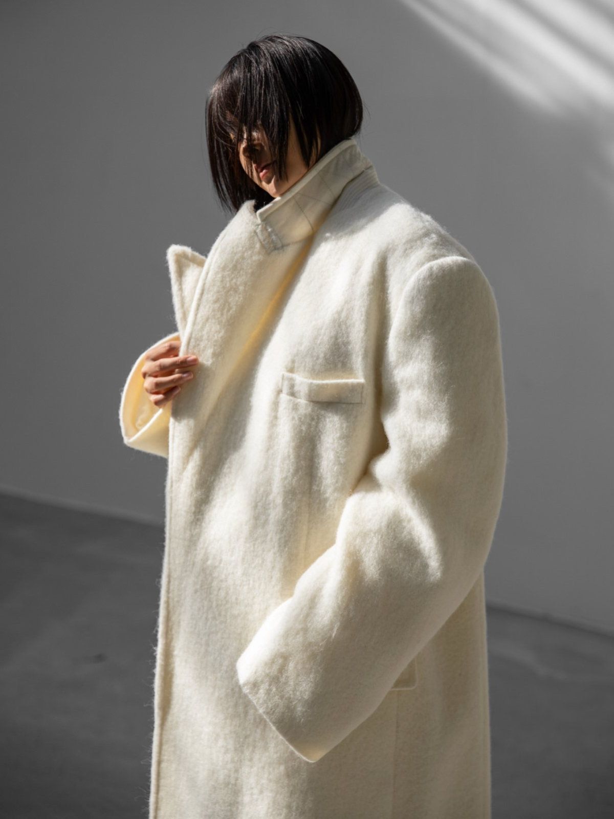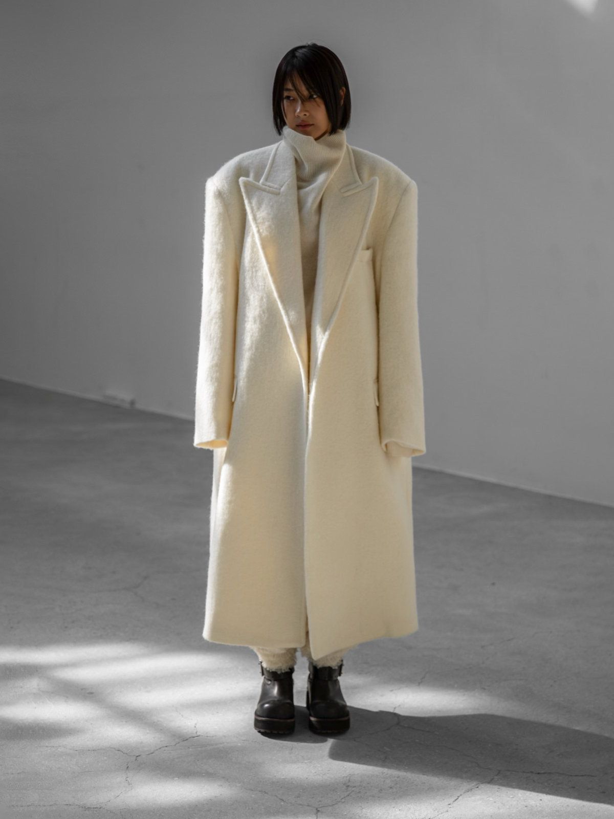 (PAPER MOON) PEAKED LAPEL DETAIL MOHAIR MAXI OVERSIZED COAT : CREAM