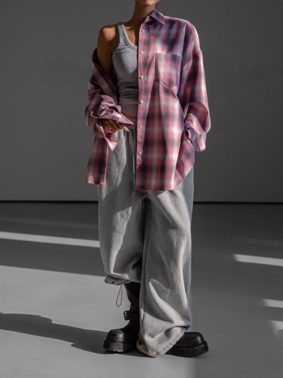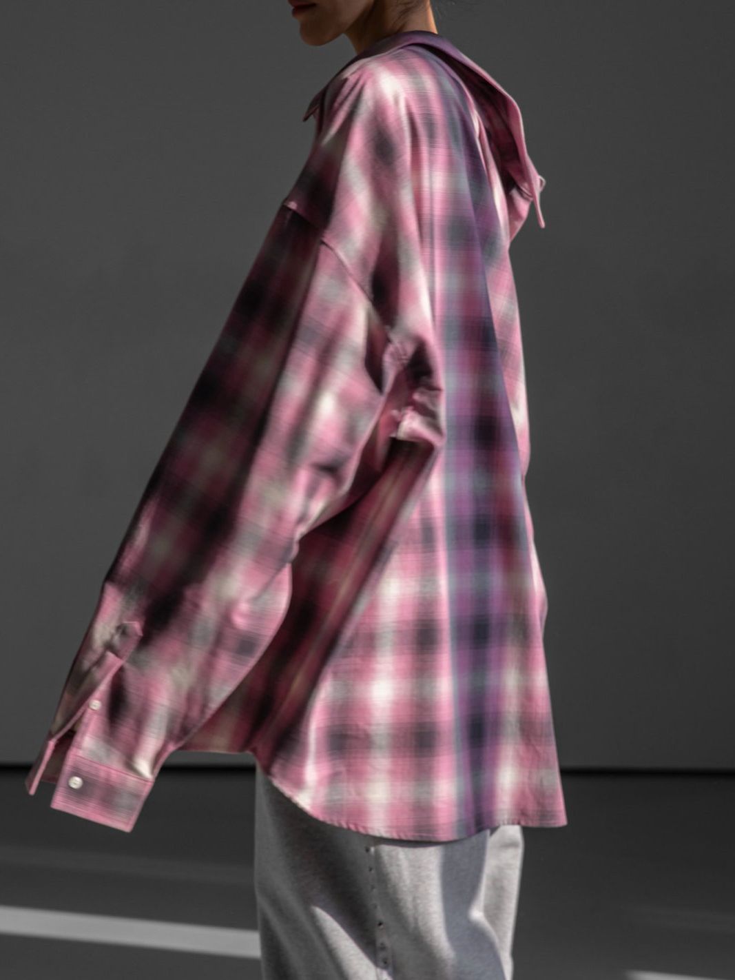 (PAPER MOON) OVERSIZED PLAID CHECK BUTTON DOWN SHIRT : PINK