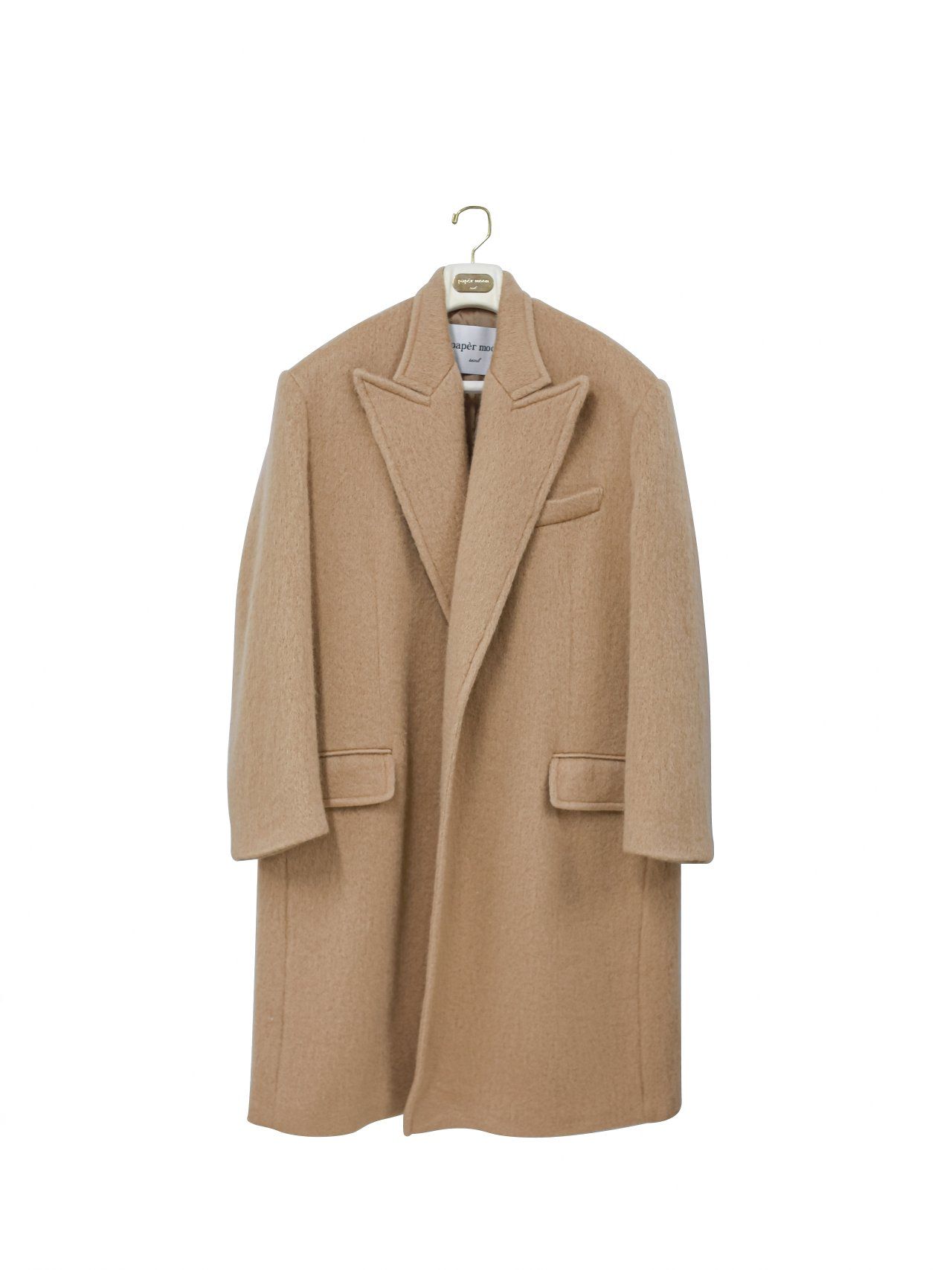 (PAPER MOON) PEAKED LAPEL DETAIL MOHAIR MAXI OVERSIZED COAT : CAMEL BEIGE