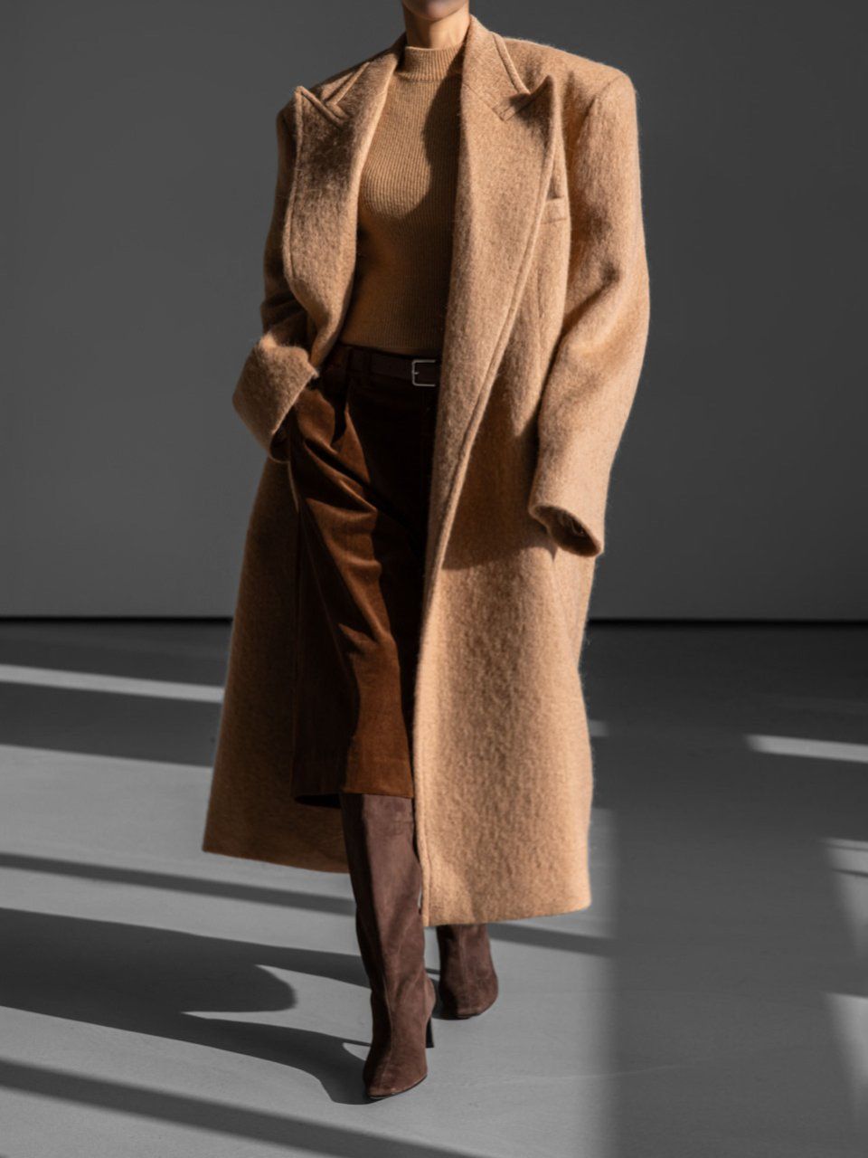(PAPER MOON) PEAKED LAPEL DETAIL MOHAIR MAXI OVERSIZED COAT : CAMEL BEIGE