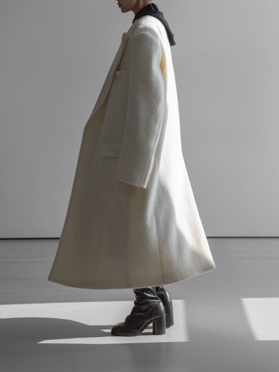 (PAPER MOON) PEAKED LAPEL DETAIL MOHAIR MAXI OVERSIZED COAT : CREAM