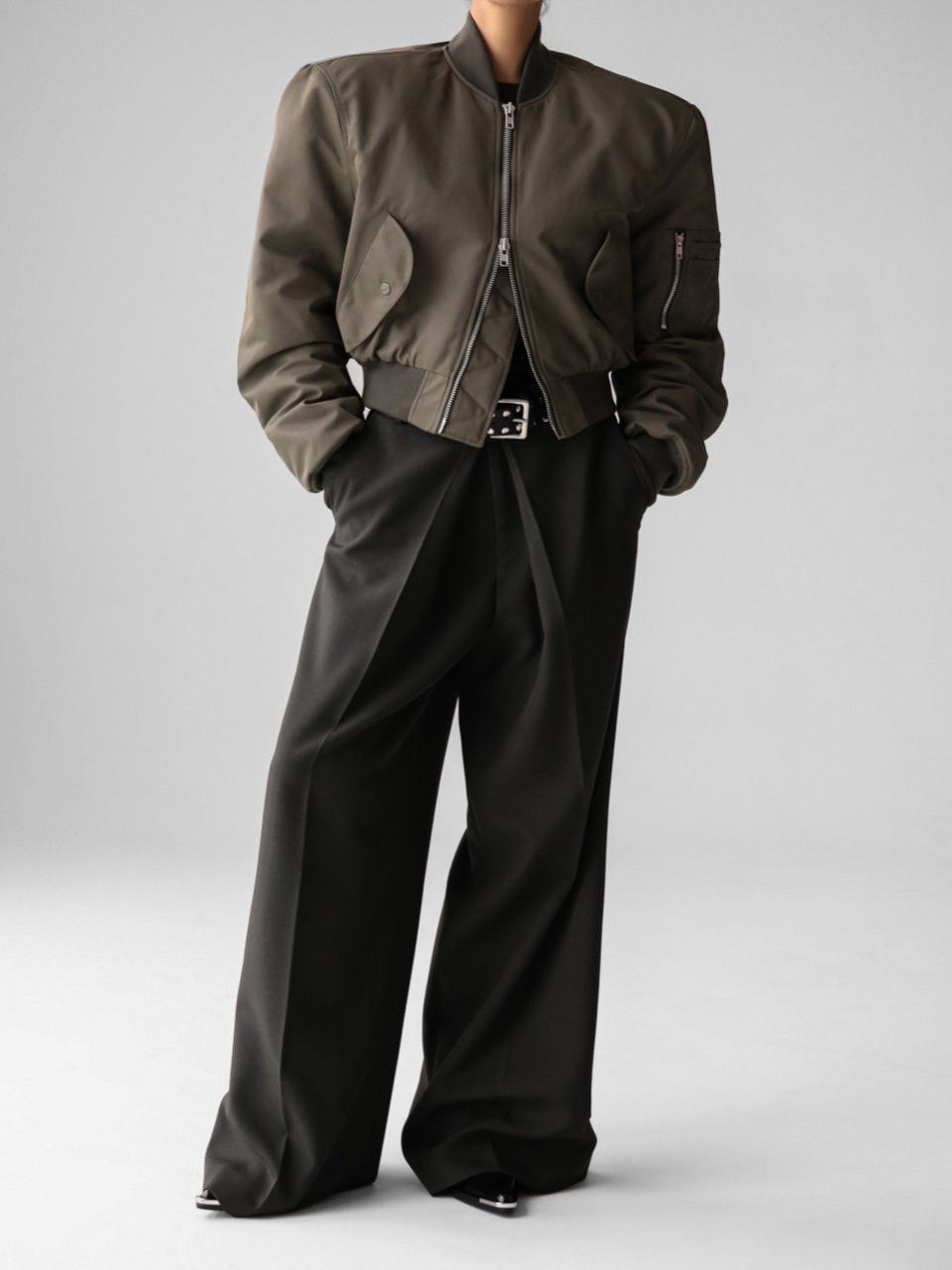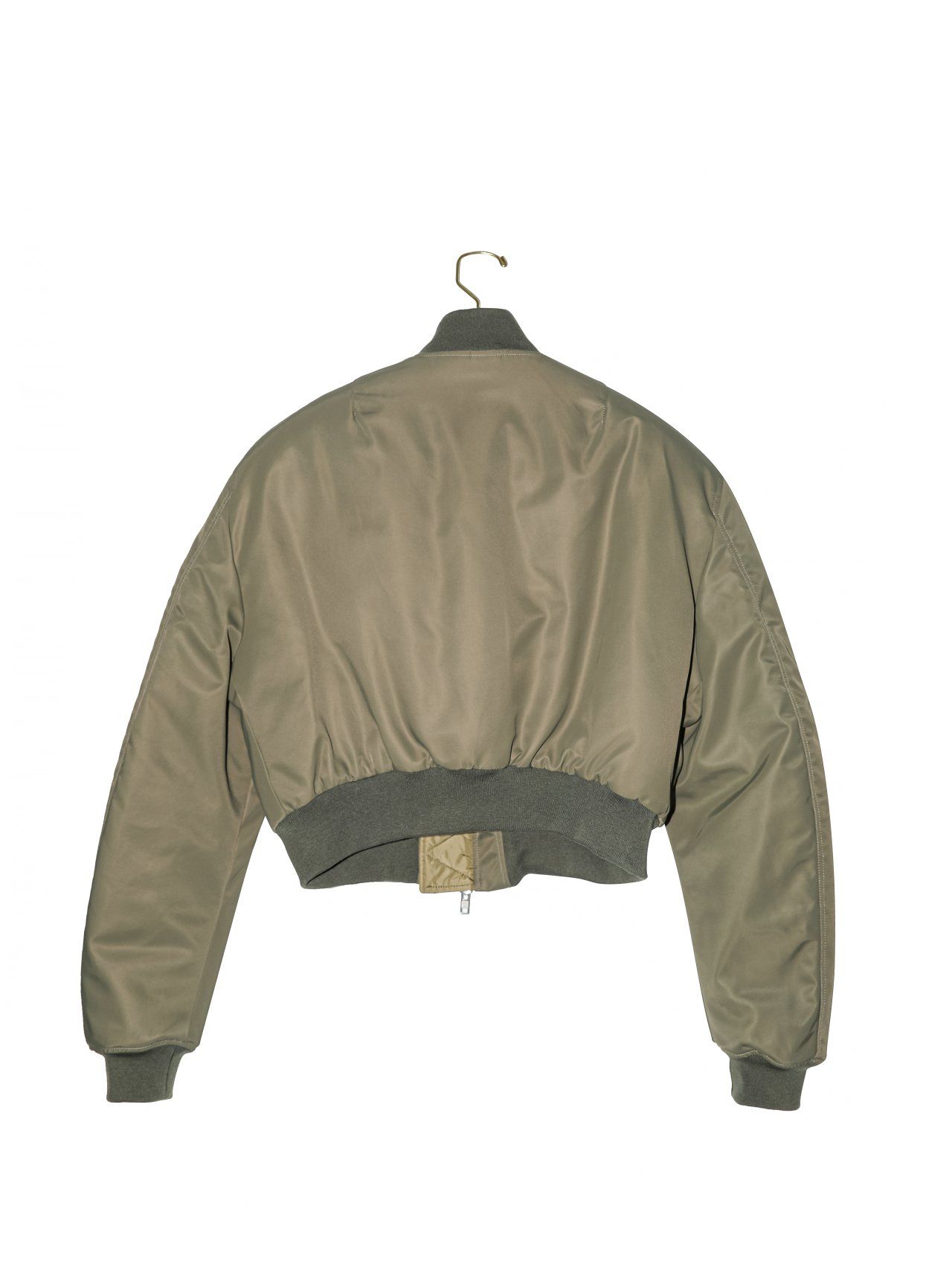 (PAPER MOON) SQUARE SHOULDER PADDED CROPPED BOMBER JACKET : KHAKI