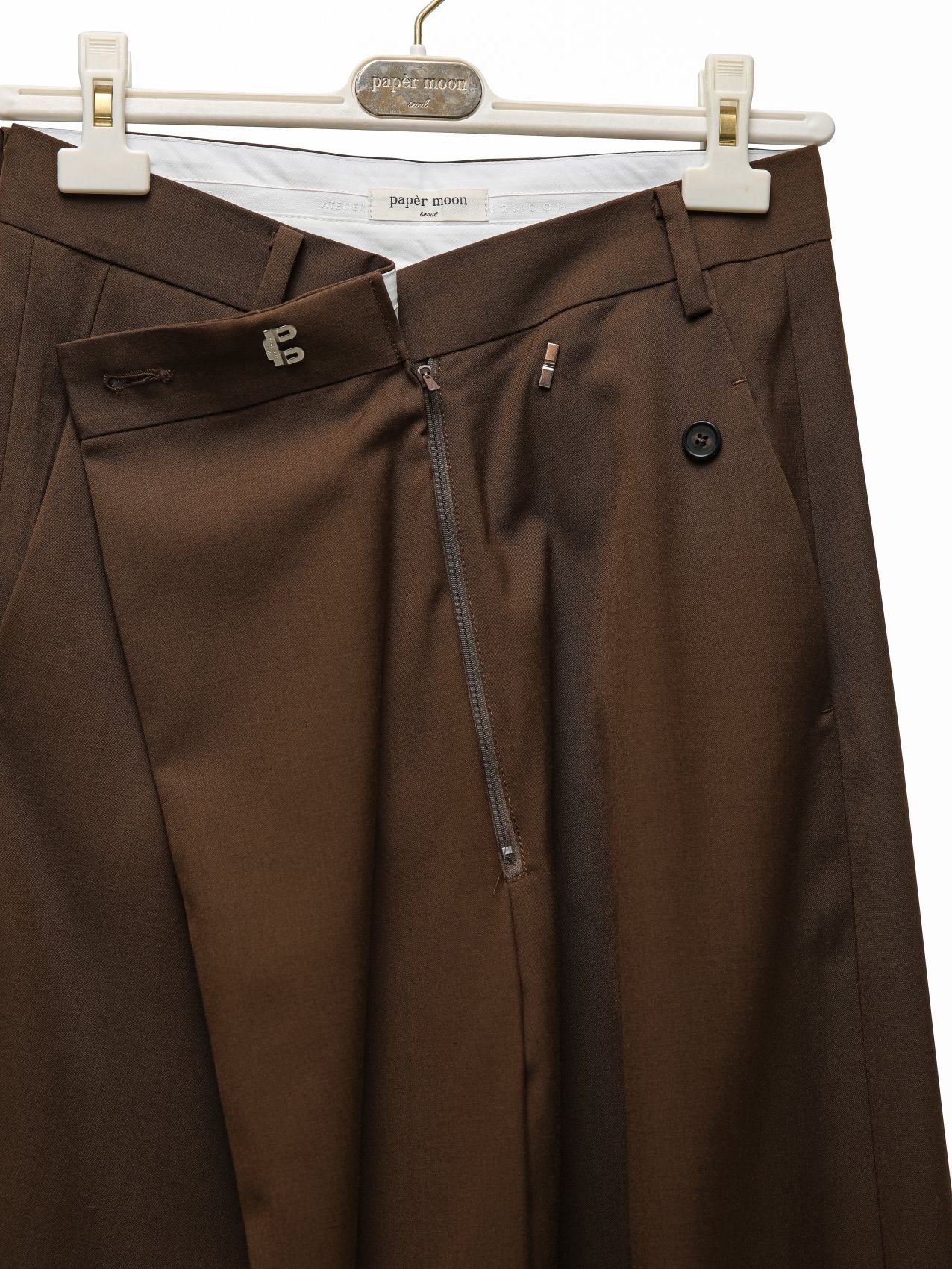 (PAPER MOON) ASYMMETRY PIN TUCK WIDE MAXI TROUSERS : BROWN