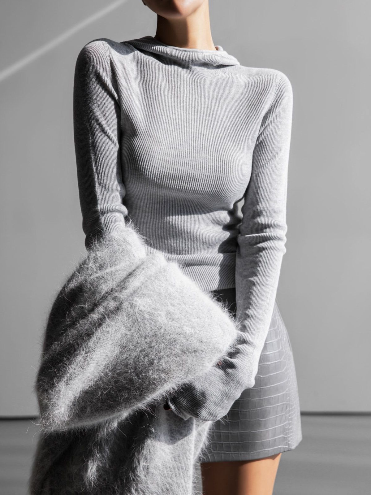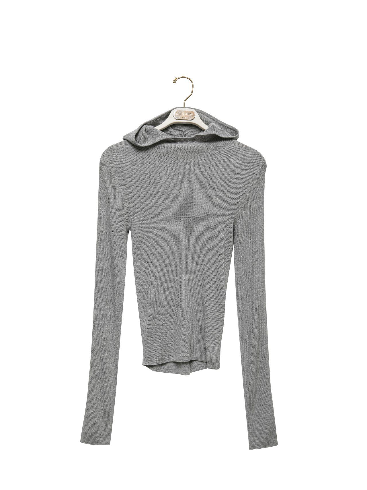 (PAPER MOON) WHOLE GARMENT HOODED KNIT TOP : HEATHER GREY
