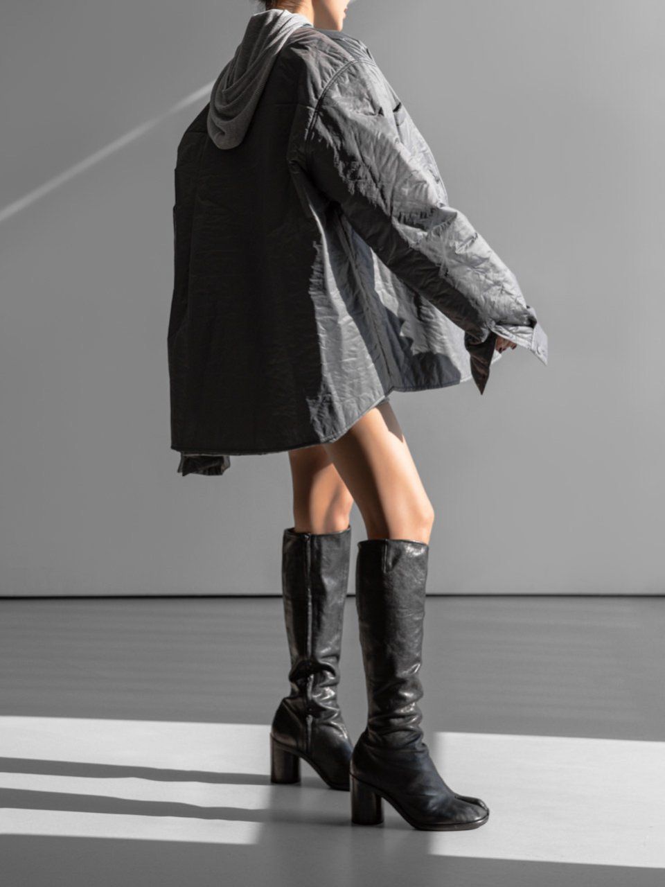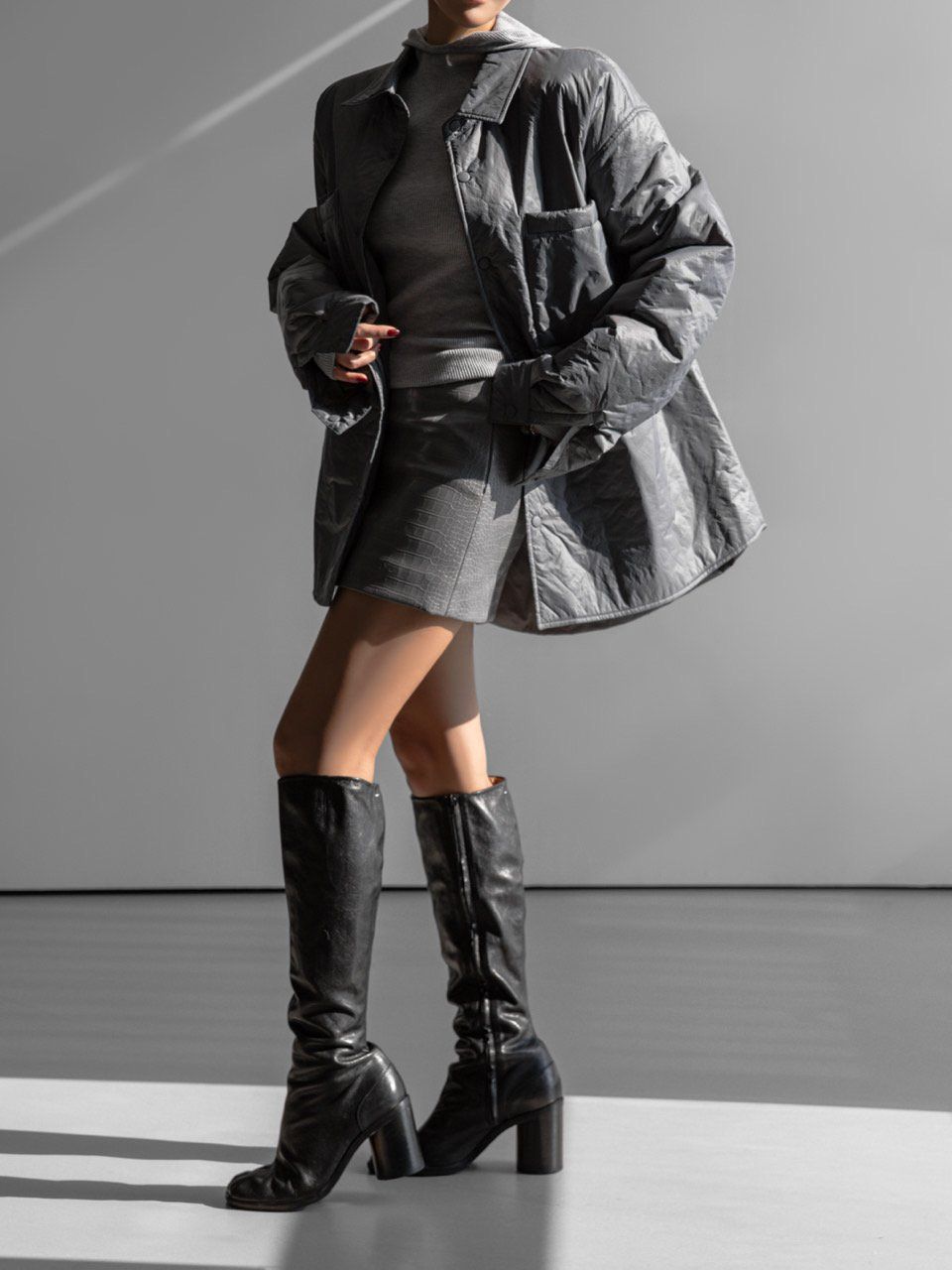 (PAPER MOON) OVERSIZED VIVID LIGHT PADDED BUTTON DOWN SHIRT : GREY