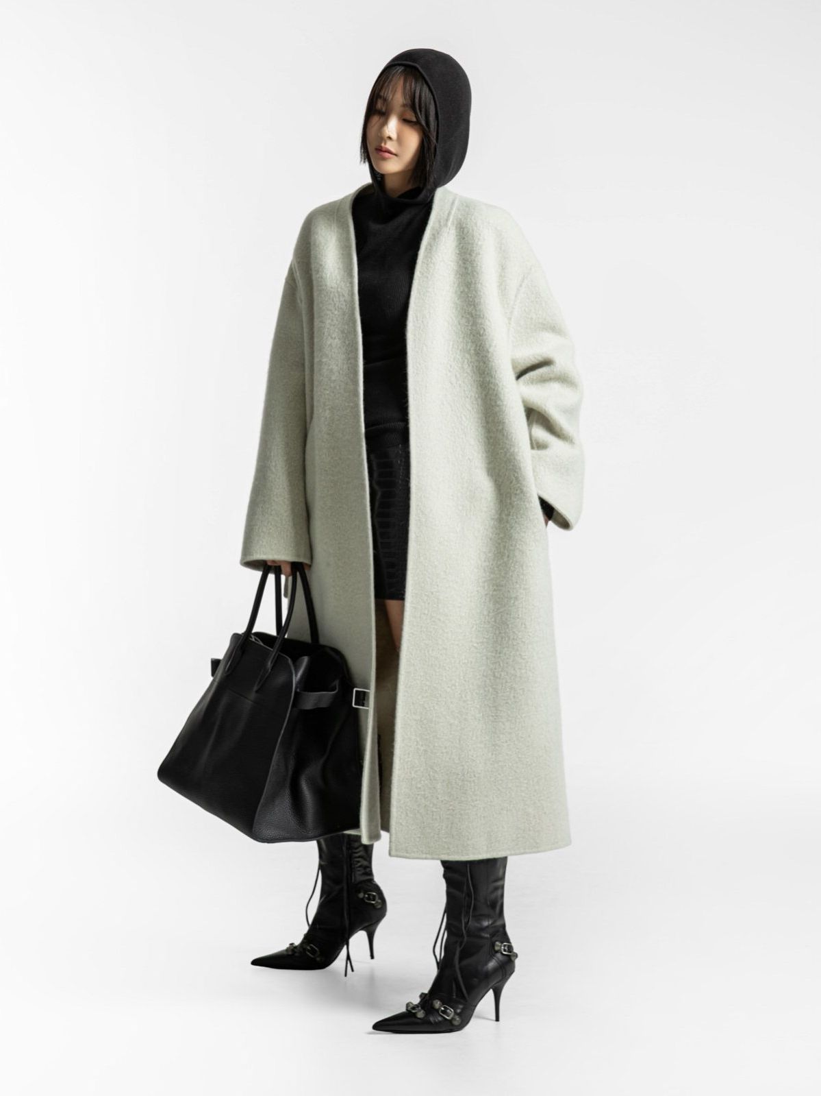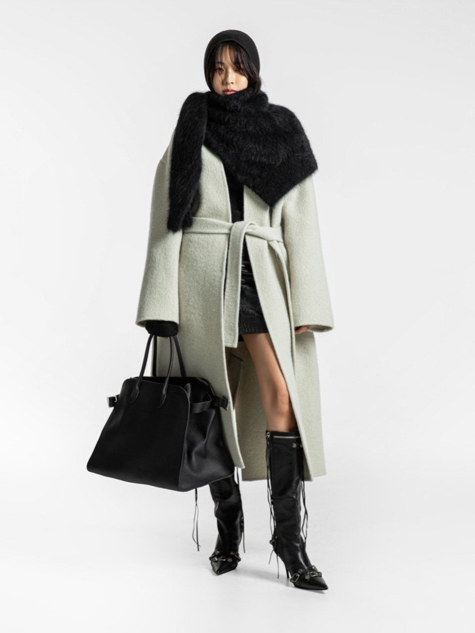 (PAPER MOON) LUX SURI ALPACA FUZZY HAND MADE ROBE COAT : CREAM MINT