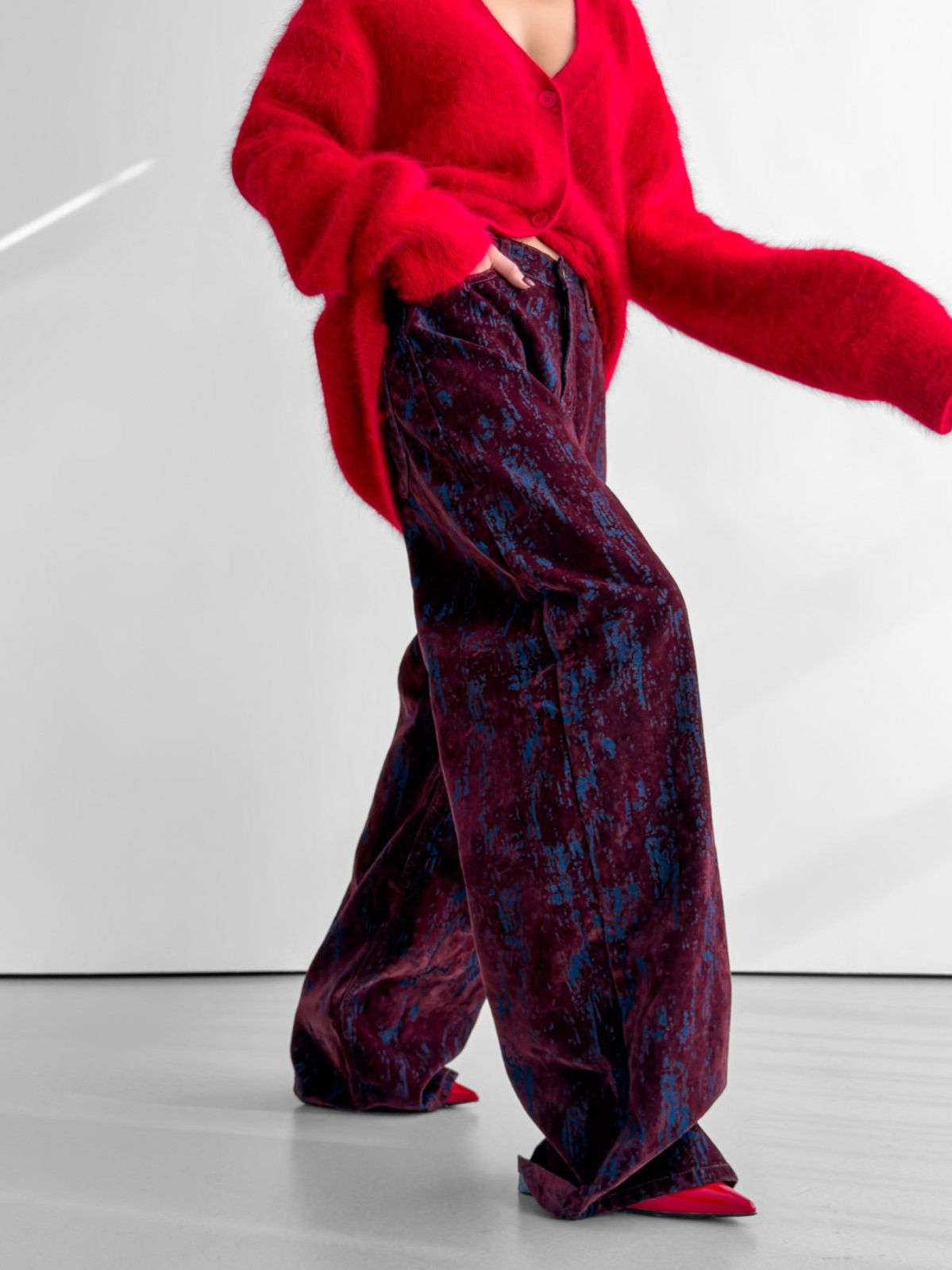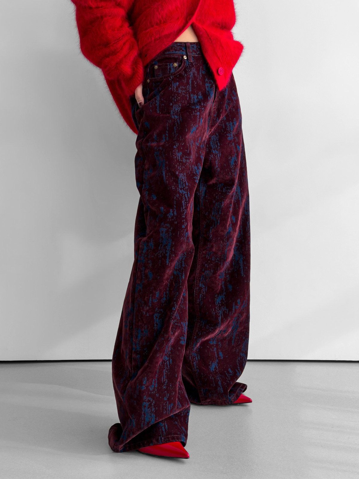 (PAPER MOON) VELVET CRACK DETAIL DENIM WIDE PANTS : BURGUNDY