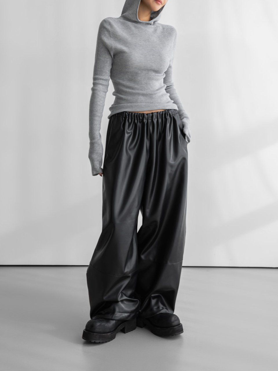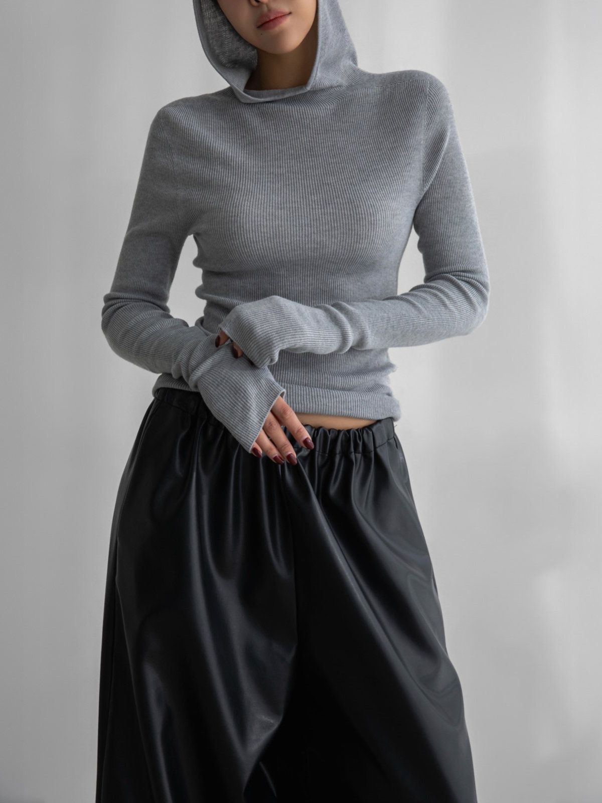 (PAPER MOON) WHOLE GARMENT HOODED KNIT TOP : HEATHER GREY