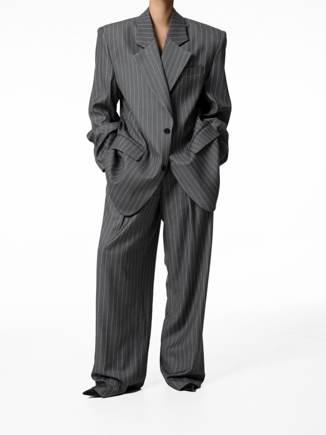 (PAPER MOON) WIDE PIN STRIPE SET UP SUIT SINGLE BLAZER : GREY PIN STRIPE