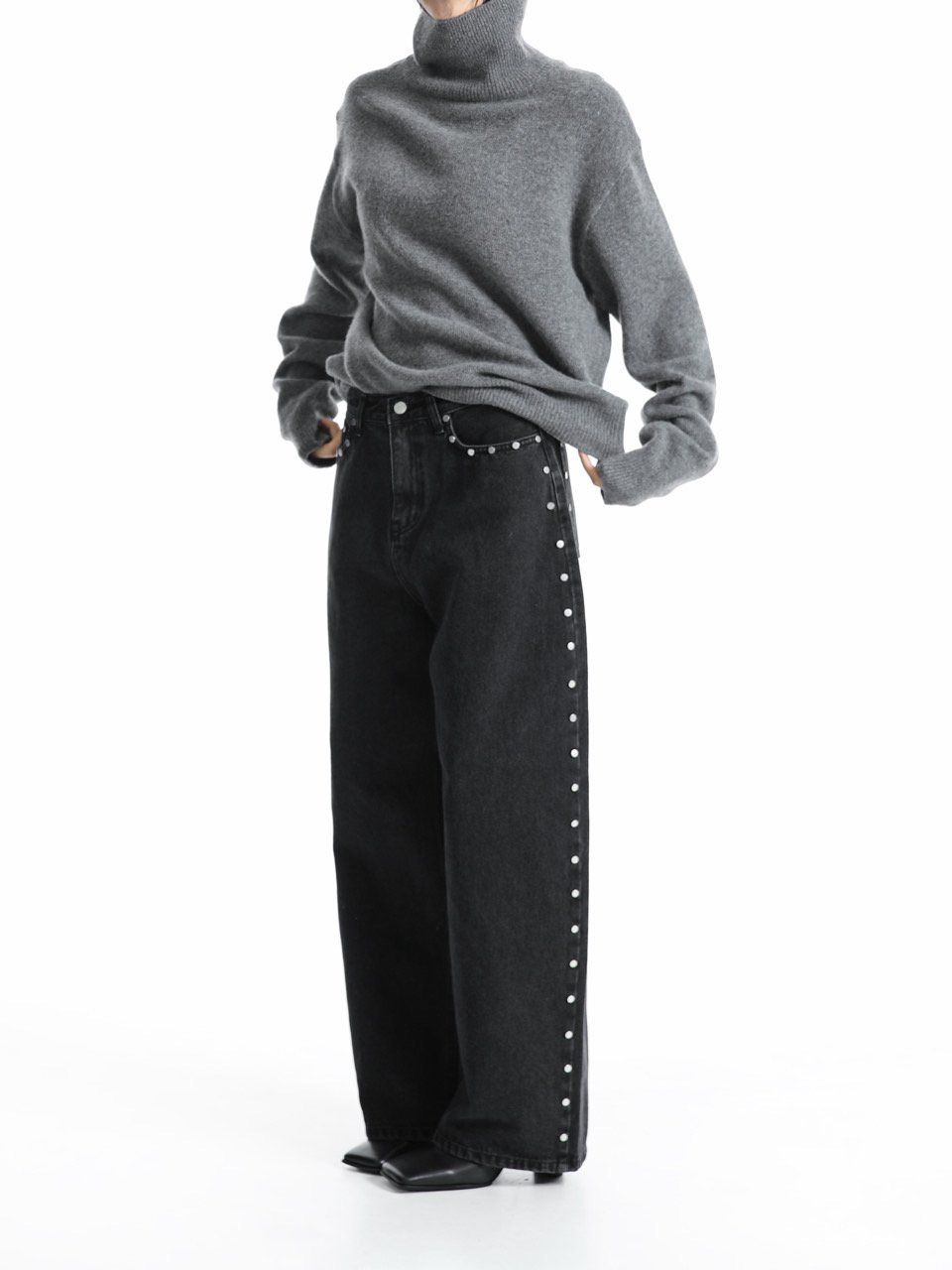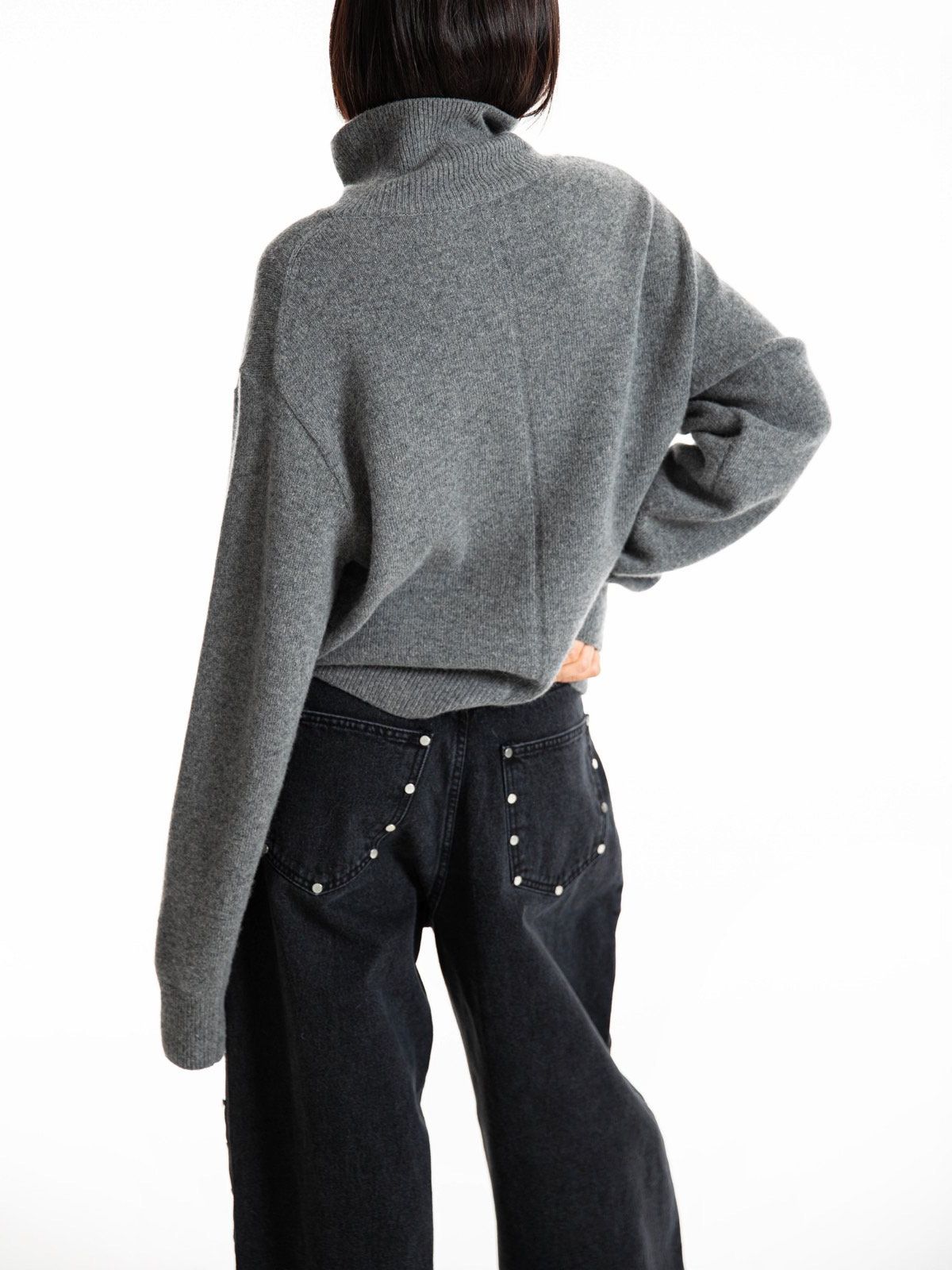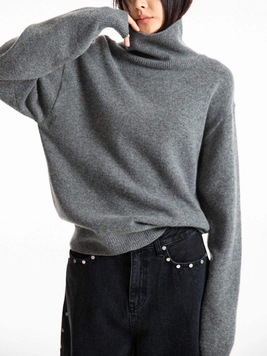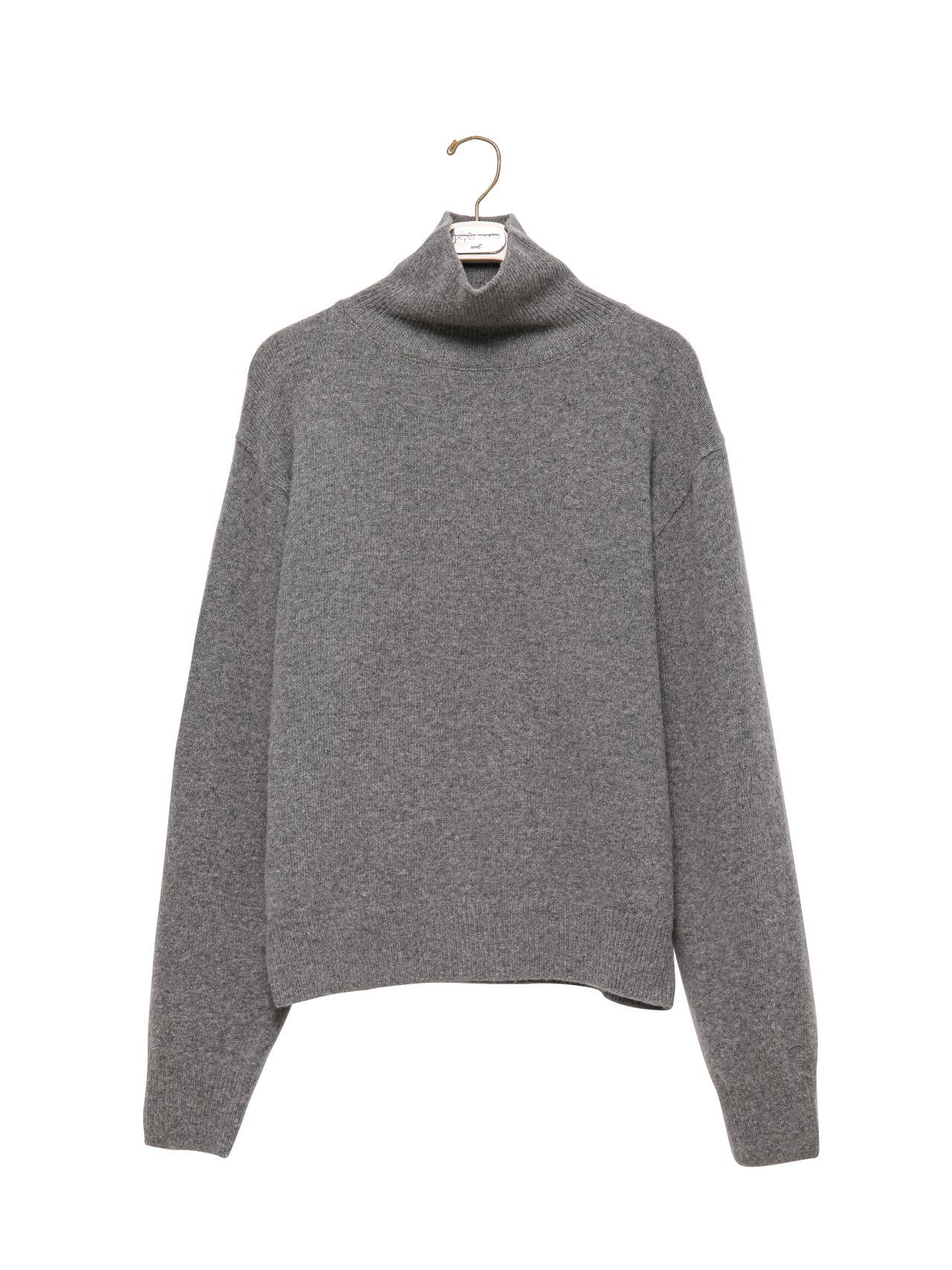 (PAPER MOON) CLASSIC CASHMERE BLENDED WOOL HIGH NECK KNIT TOP : HEATHER GREY