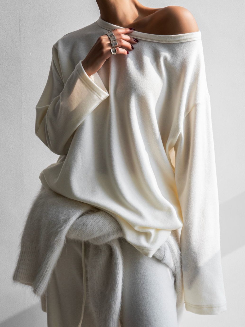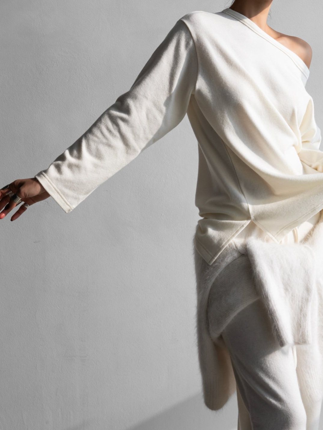 (PAPER MOON) SOFT LOUNGE SET - UP BOATNECK TEE : CREAM