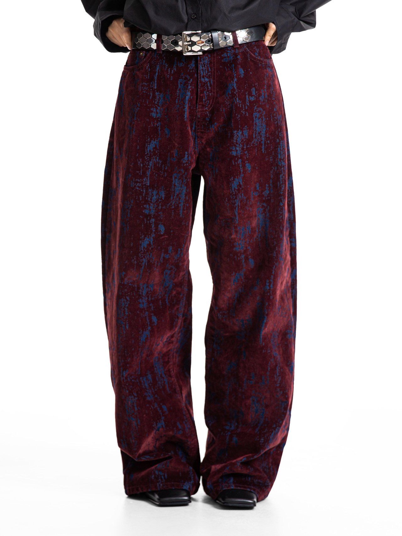 (PAPER MOON) VELVET CRACK DETAIL DENIM WIDE PANTS : BURGUNDY