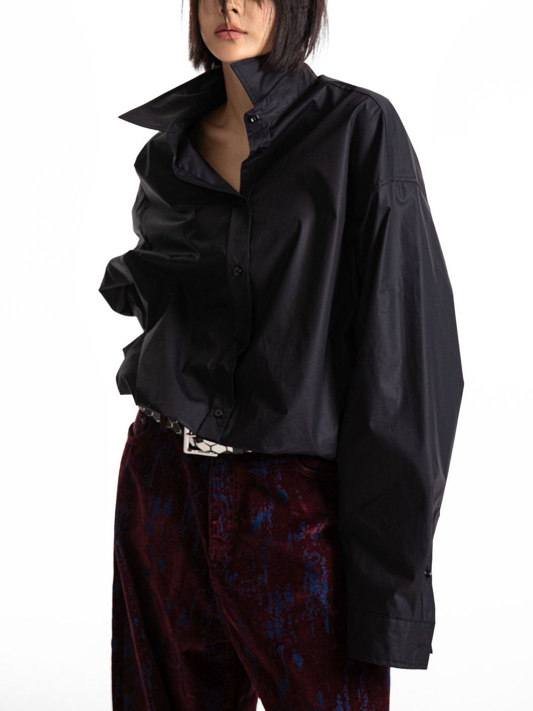 (PAPER MOON) BALLOON FIT VOLUME COTTON BUTTON DOWN SHIRT : BLACK