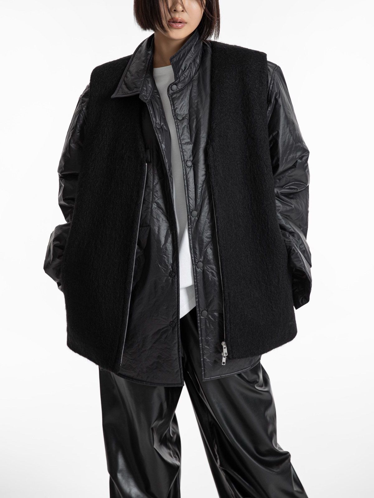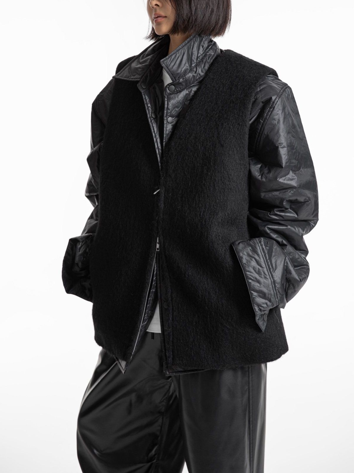 (PAPER MOON) ALPACA WOOL ZIPPED - UP VEST : BLACK