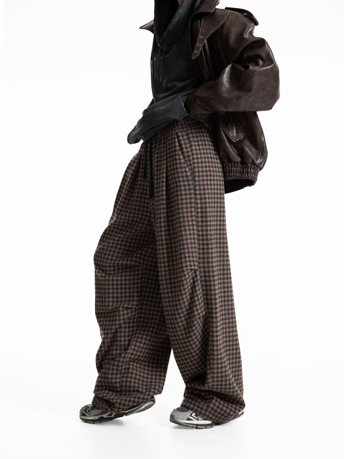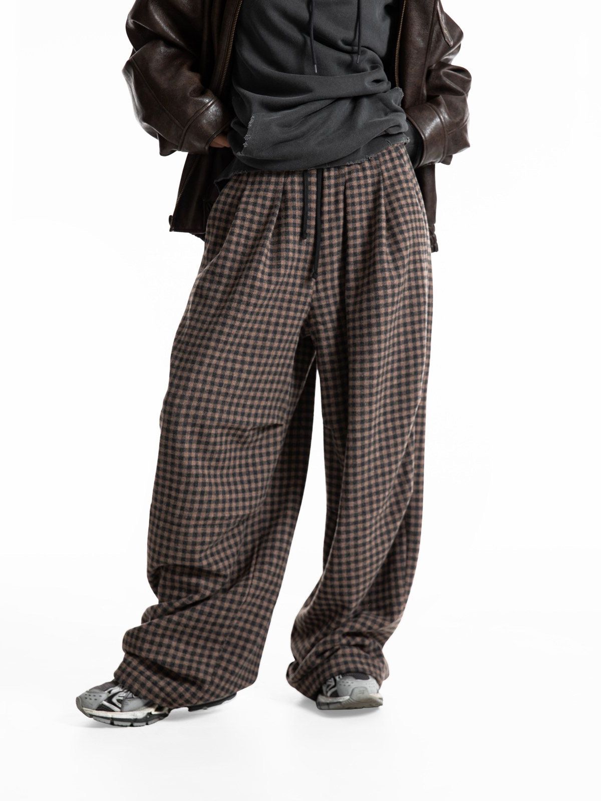 (PAPER MOON) BANDED WOOL CHECK WIDE TROUSERS : BROWN CHECK