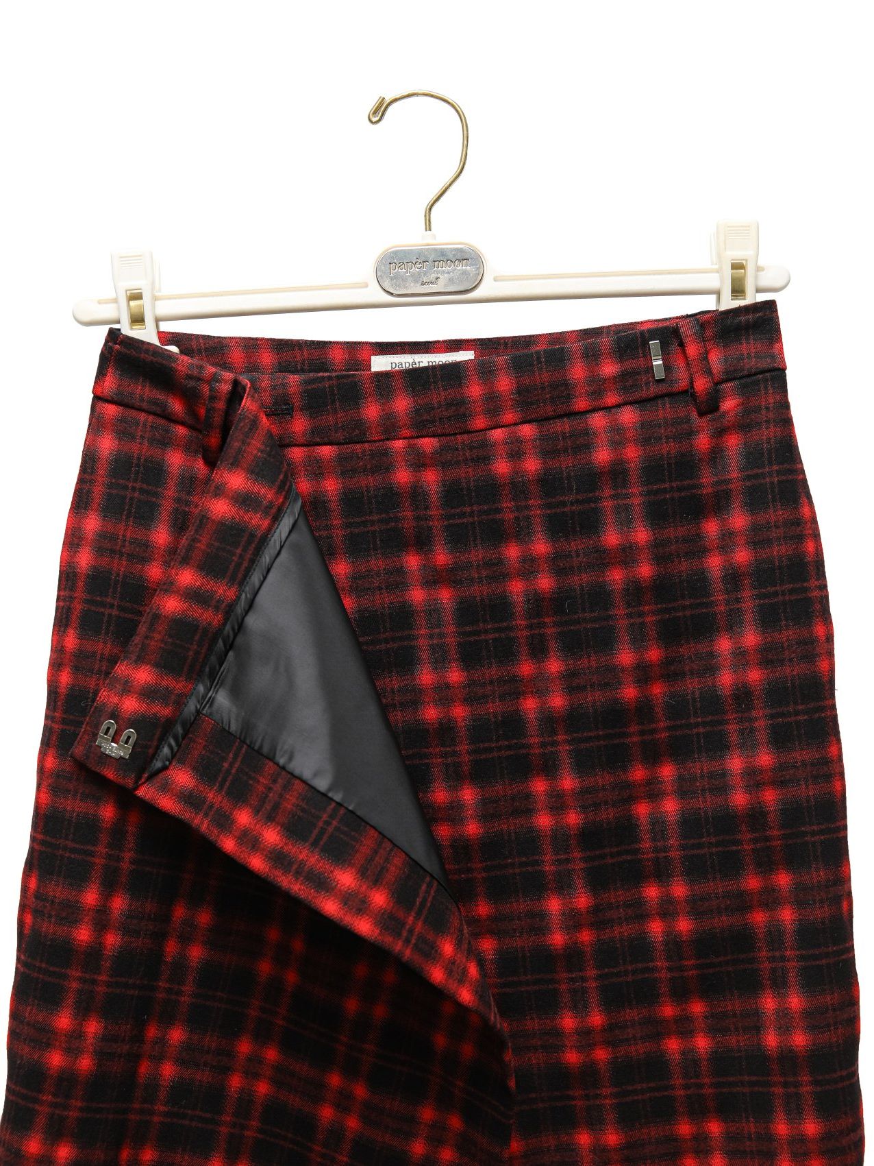 (PAPER MOON) PLAID CHECK PATTERN WRAP MIDI SKIRT : RED+BLACK