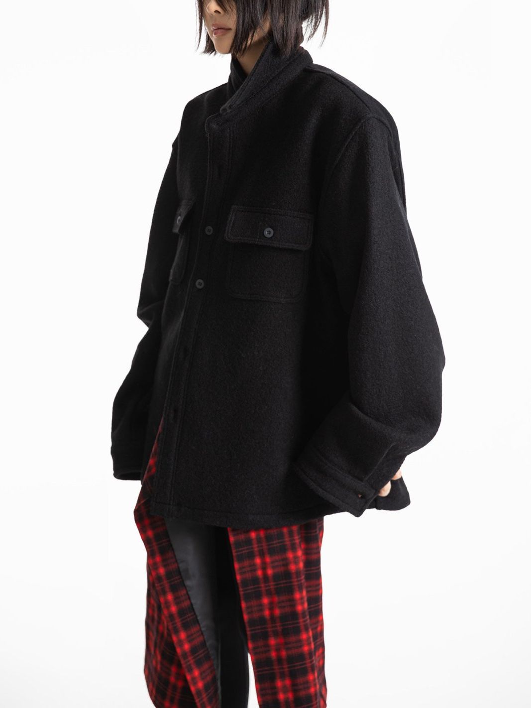 (PAPER MOON) CASENTINO WOOL OVERSIZED POCKET BUTTON DOWN SHIRT : BLACK
