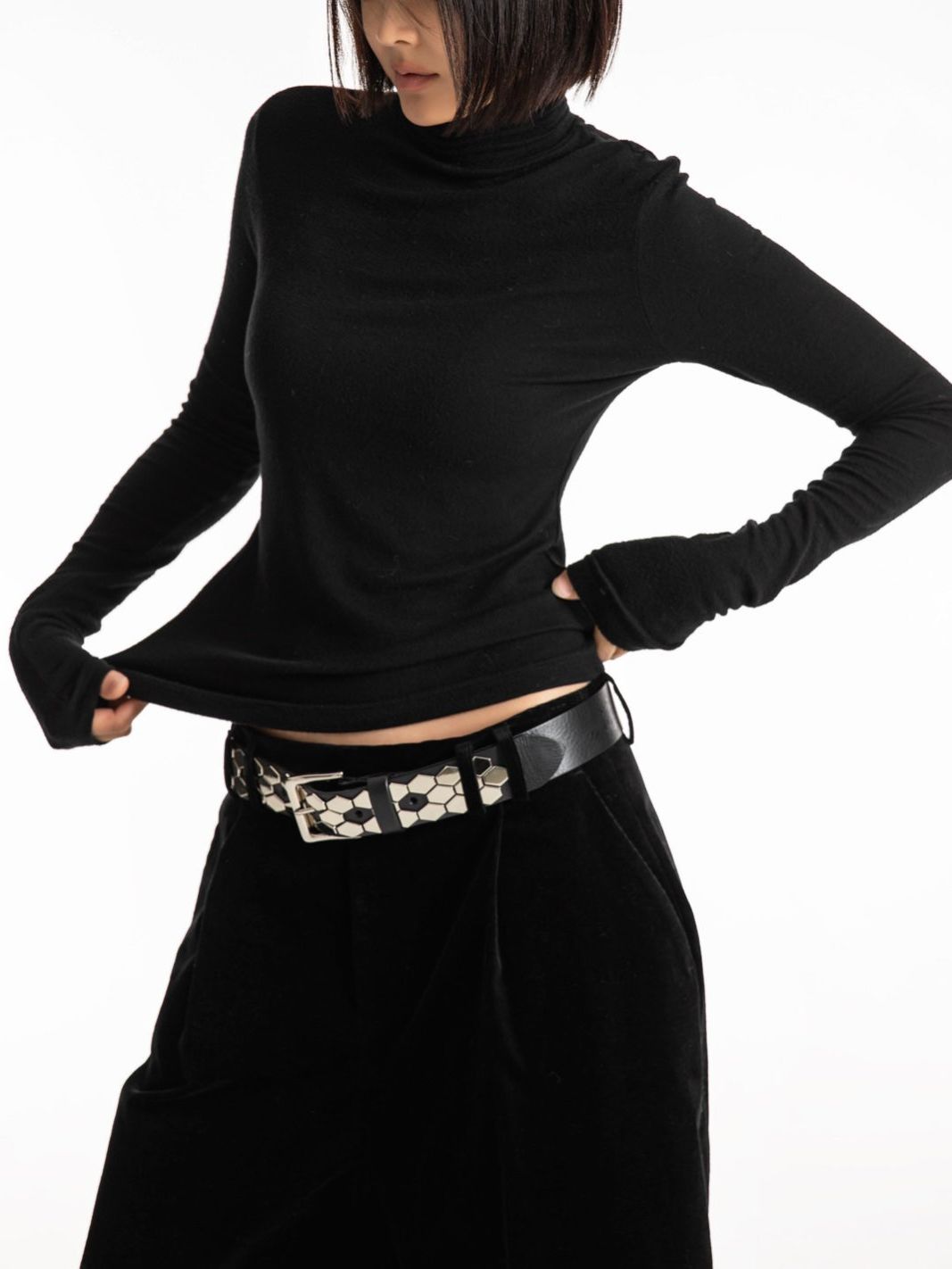 (PAPER MOON) SOFT WARM TEXTURE CLASSIC TURTLENECK T : CHARCOAL