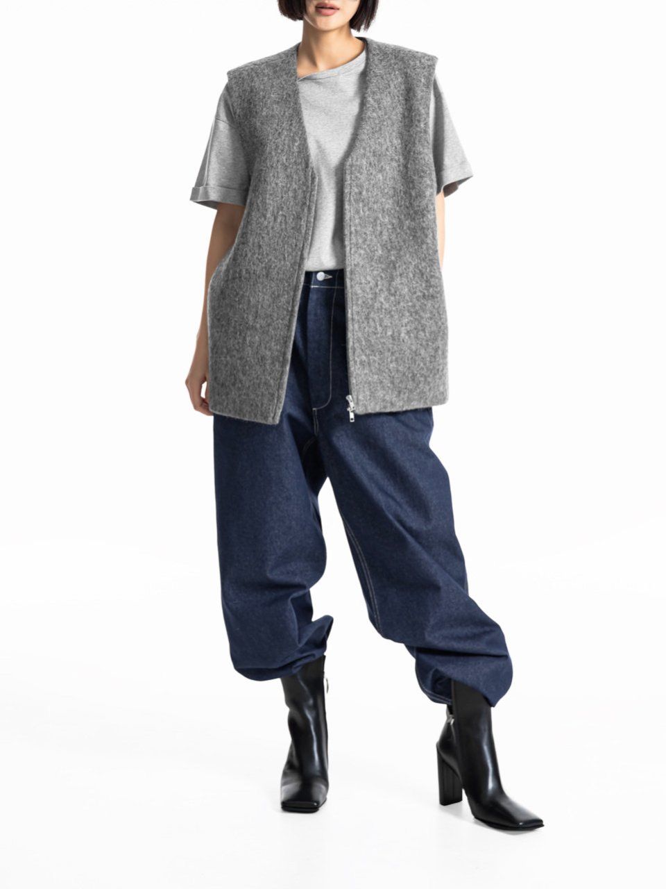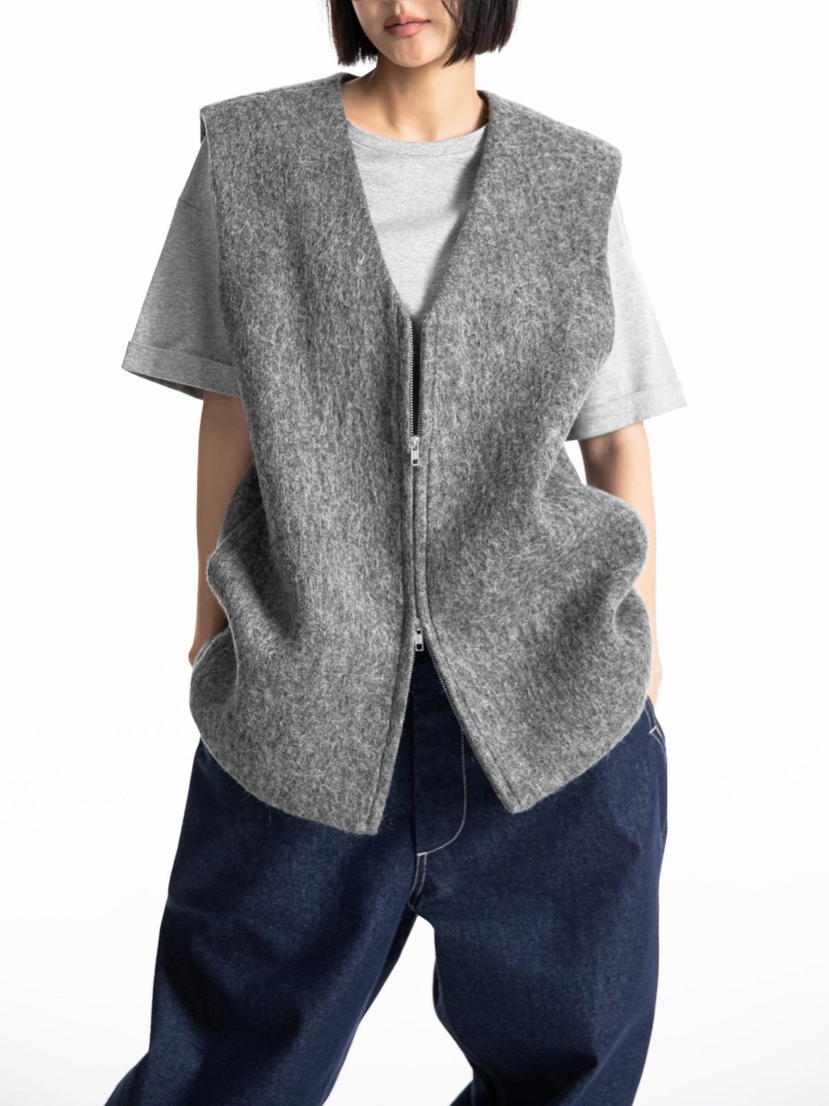 (PAPER MOON) ALPACA WOOL ZIPPED - UP VEST : HEATHER GREY